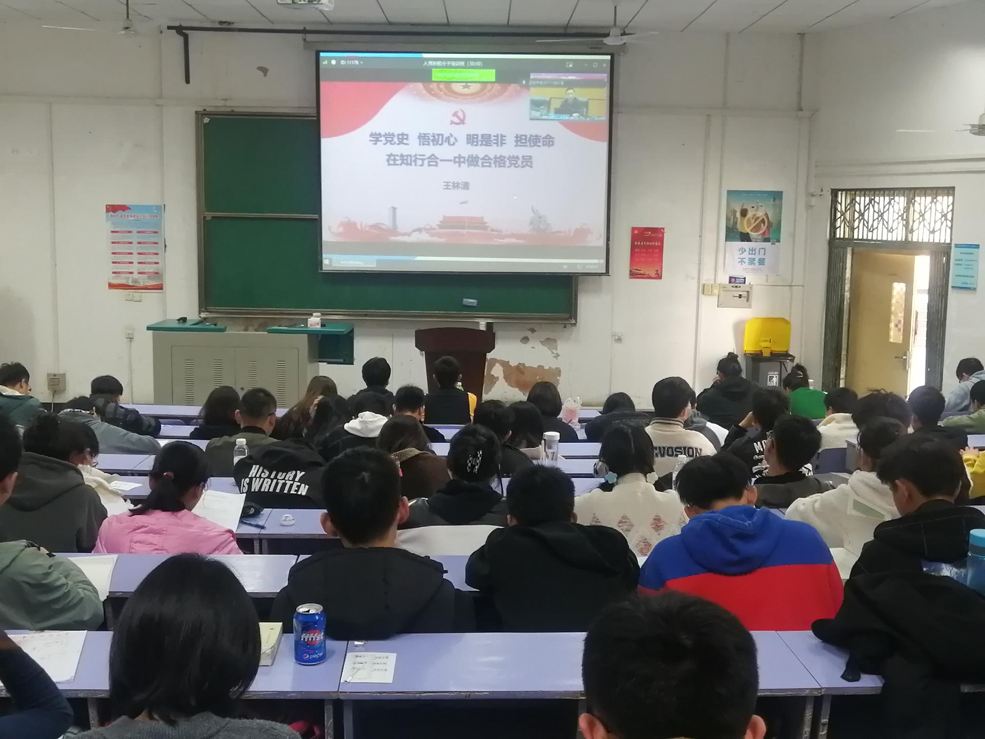 第七十一期入党积极分子培训班开班暨党史学习教育专题党课。校党委副书记王林清以《学党史 悟初心 明是非 担使命——在知行合一中做合格党员》为题,通过辛亥革命等旧中国时期救国救民革命道路探索、以建党精神为源头的精神谱系的形成和意义、地大人的报国事迹和时代担当等内容,讲授党史学习教育专题党课,鼓励青年学子在积极向党组织靠拢中,找准思想的明灯、行动的方向,让青春在努力奋斗中绽放光彩。