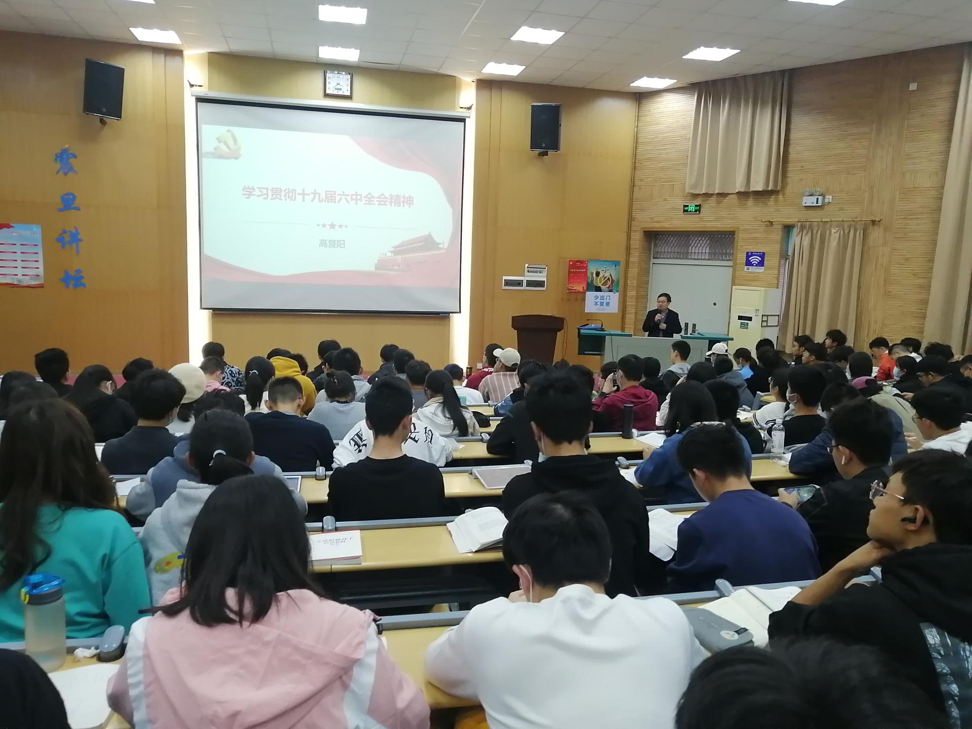 党委书记高复阳老师以《学习贯彻党的十九届六中全会精神》为题,介绍了党的十九届六中全会召开的历史背景、重要意义、基本情况和主要成果,领学了《中共中央关于党的百年奋斗重大成就和历史经验的决议》的主要内容和重大意义,以“两个转化、三个作为”分享了学习思考和感悟。