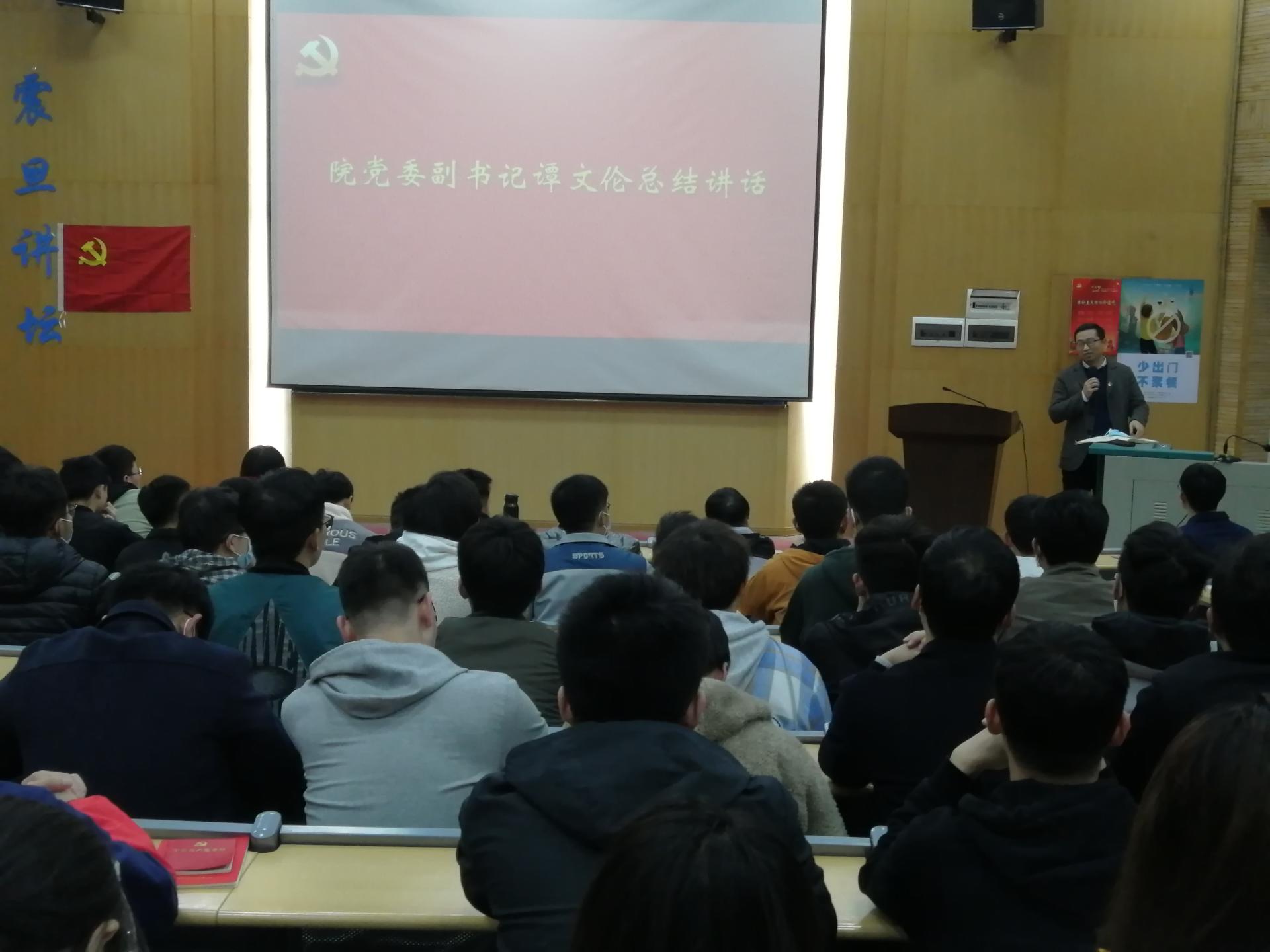 党委组织开展学生党员集中学习党的十九届六中全会精神暨示范“支部主题党日”活动,聚焦《高校党组织“对标争先”建设计划实施意见》中“五个到位”和“七个有力”进一步加强和改进学生党建工作。学院党委书记高复阳、党委副书记谭文伦、党建工作办公室主任霍少孟、全体专兼职辅导员和各学生党支部书记、全体学生党员参加会议。霍少孟主持会议。