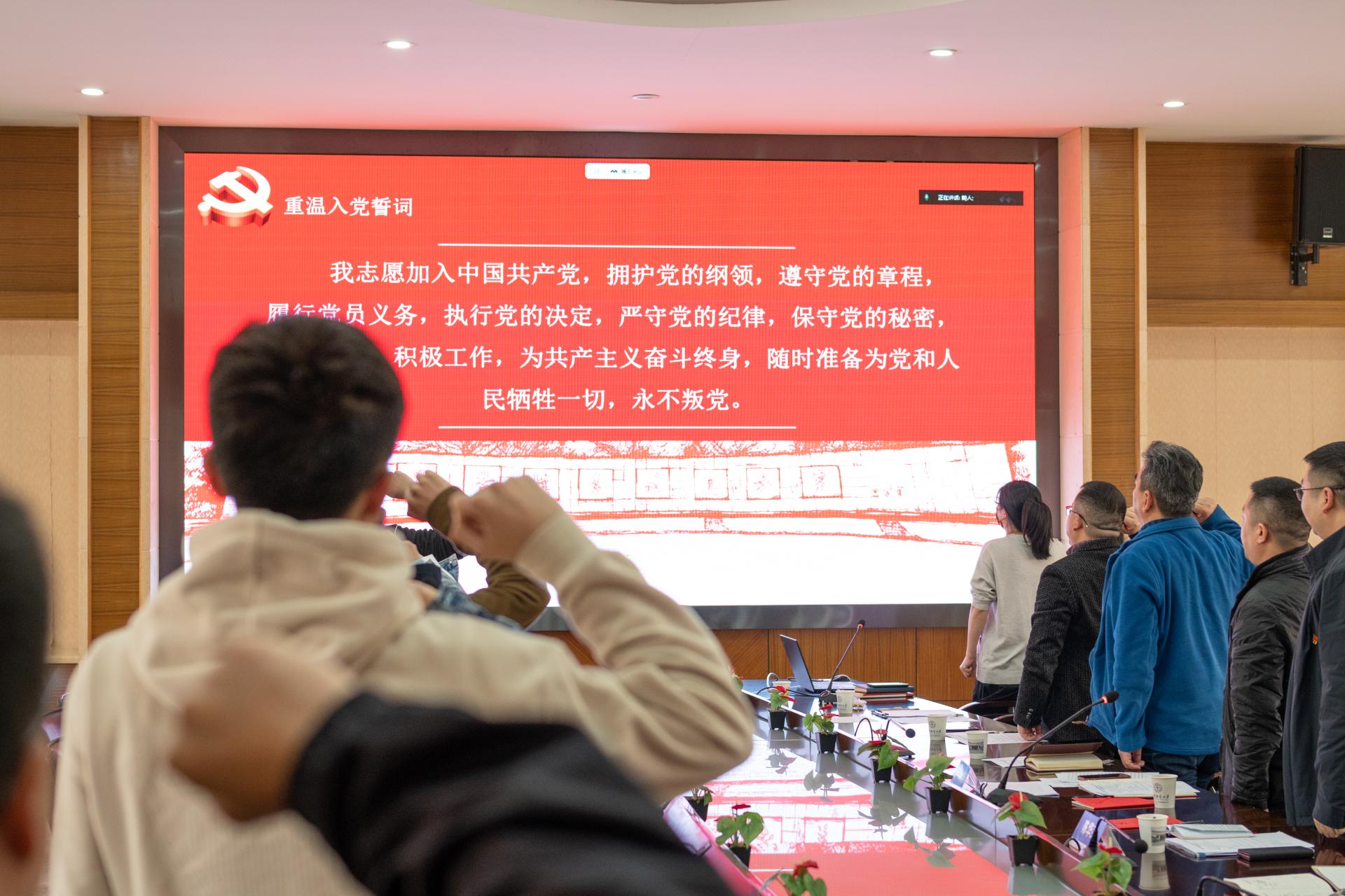 会上,集体为党员陈华荣同志过“政治生日”,高复阳赠送纪念贺卡。