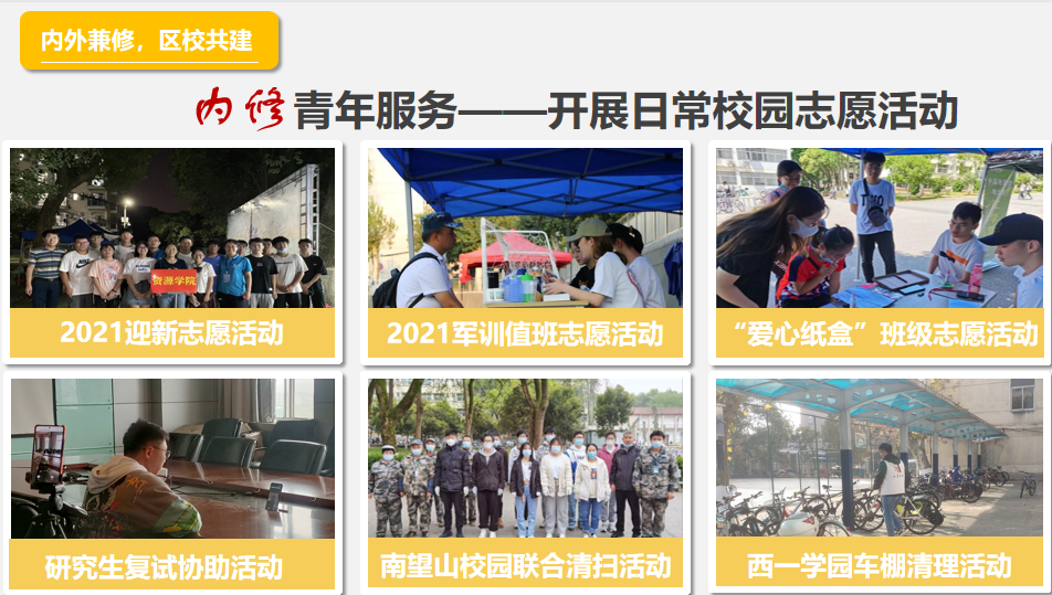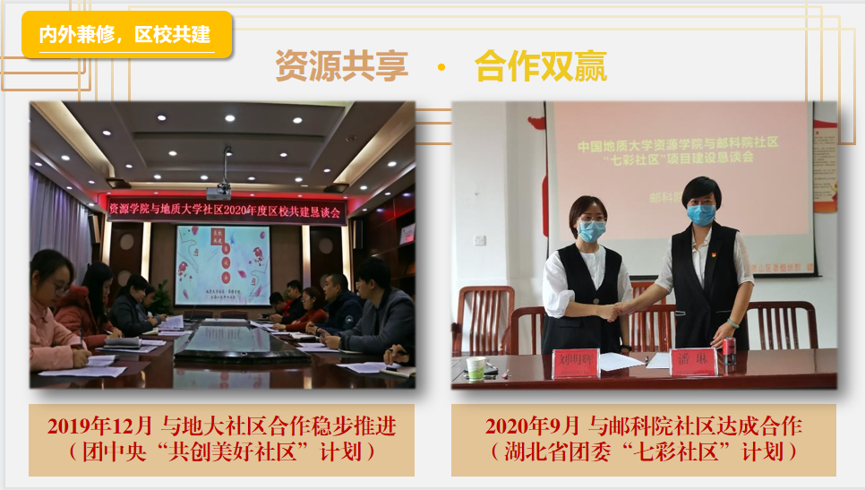 生挂职社区书记助理项目被洪山区组织部在全区推广,获评洪山区优秀党建项目。2020年8月,成功获批由团省委、省志愿者协会主办的“七彩社区”项目。2020年12月,成功获批团中央“共创美好社区”项目试点单位。