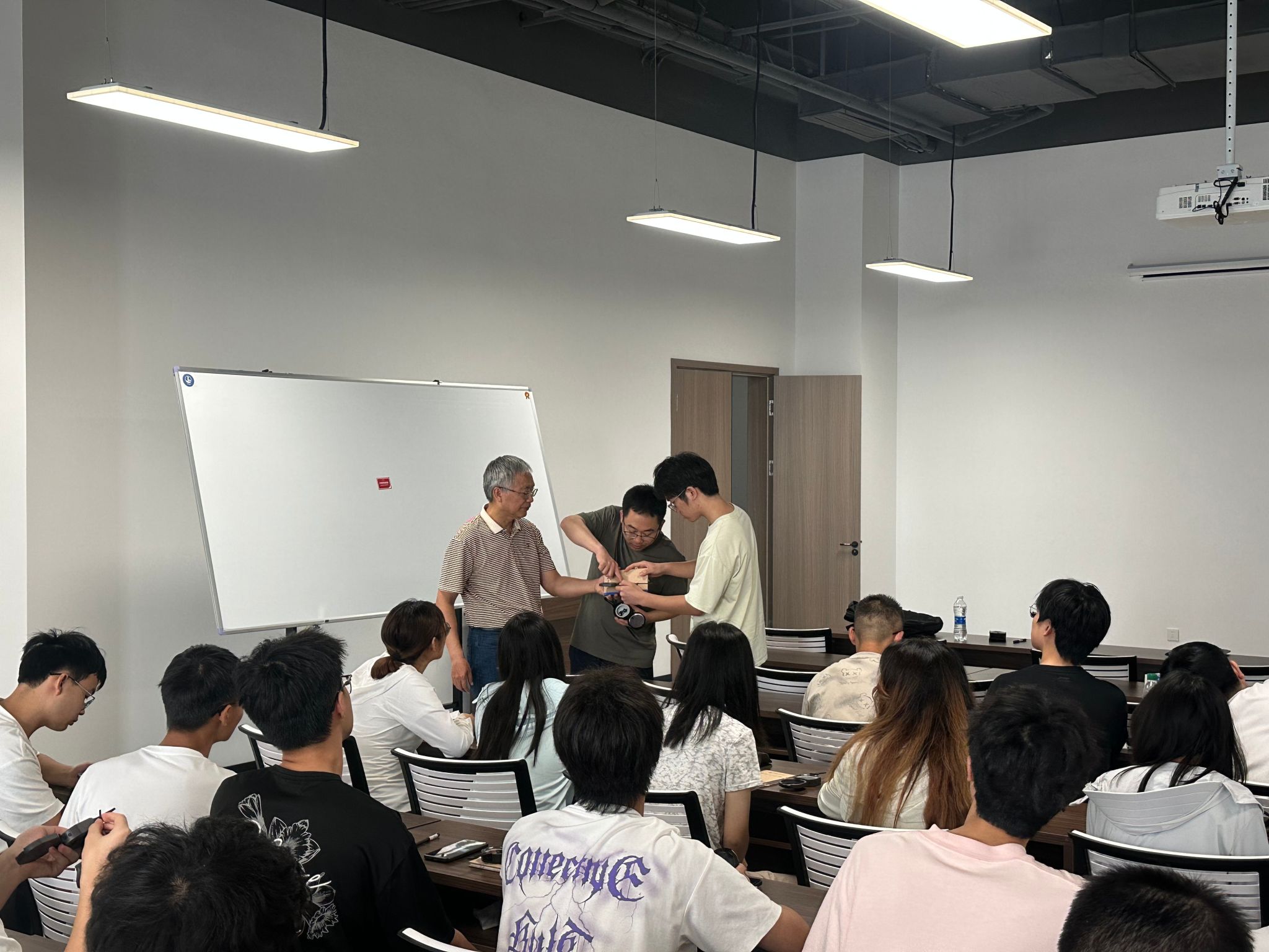 在园区举行“威海地质实习动员大会”。实习队教师杨香华详细介绍了实习路线安排、教学内容以及注意事项。他希望,通过本次实习,同学们扎实掌握野外技能,培养地质思维与时空观。王维介绍了野簿记录规范、罗盘使用规范。