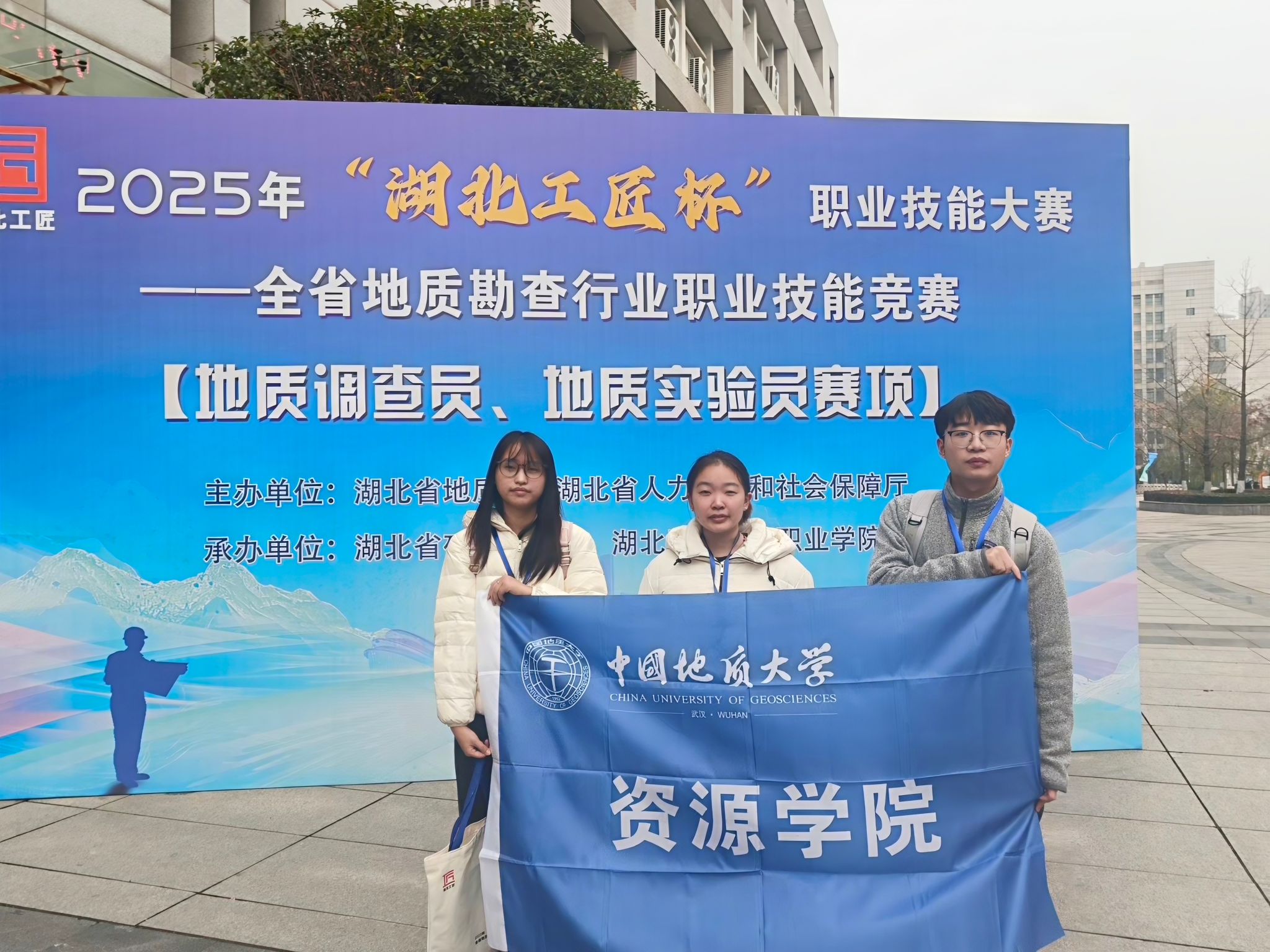 2022级资源勘查工程专业本科生赵彼希、章玲、孙岳璐组成的代表队与来自全省的地勘单位、相关高校等24支代表队同台开展地质技能大比拼。最终,凭借扎实的专业功底和娴熟的实操技能,取得优异成绩,其中孙岳璐以205.4分的总分位列全省第四(高校序列第一),并成功斩获三等奖。