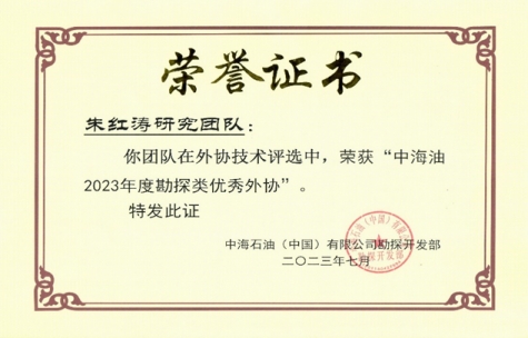团队获得中海油2023年度勘探类优秀外协奖