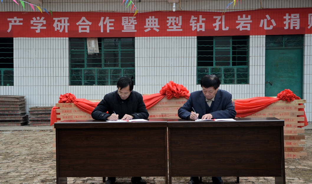 郝芳副校长与中国陕西核工业集团公司签署了战略合作框架协议,在此框架下中陕核集团二一一大队无偿捐赠两口完整钻孔岩芯用以支持跳高高电子