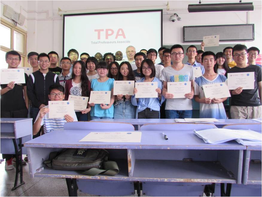 为石油相关专业的学生讲授了TOTAL公司全球性TPA课程“Fractured Reservoirs”。TPA课程是法国TOTAL公司推出的针对石油相关专业学生的全球性课程,由公司内部资深教授进行授课,课程持续5天,总计20课时。课程采取“报名—审核—授课—考核”的程序进行管理,并配备2名助教,最终通过考核的学员将会获得由TOTAL公司颁发的证书。此次课程共选拔了35名学生参加,包括本科生、硕士研究生、博士研究生及留学生。