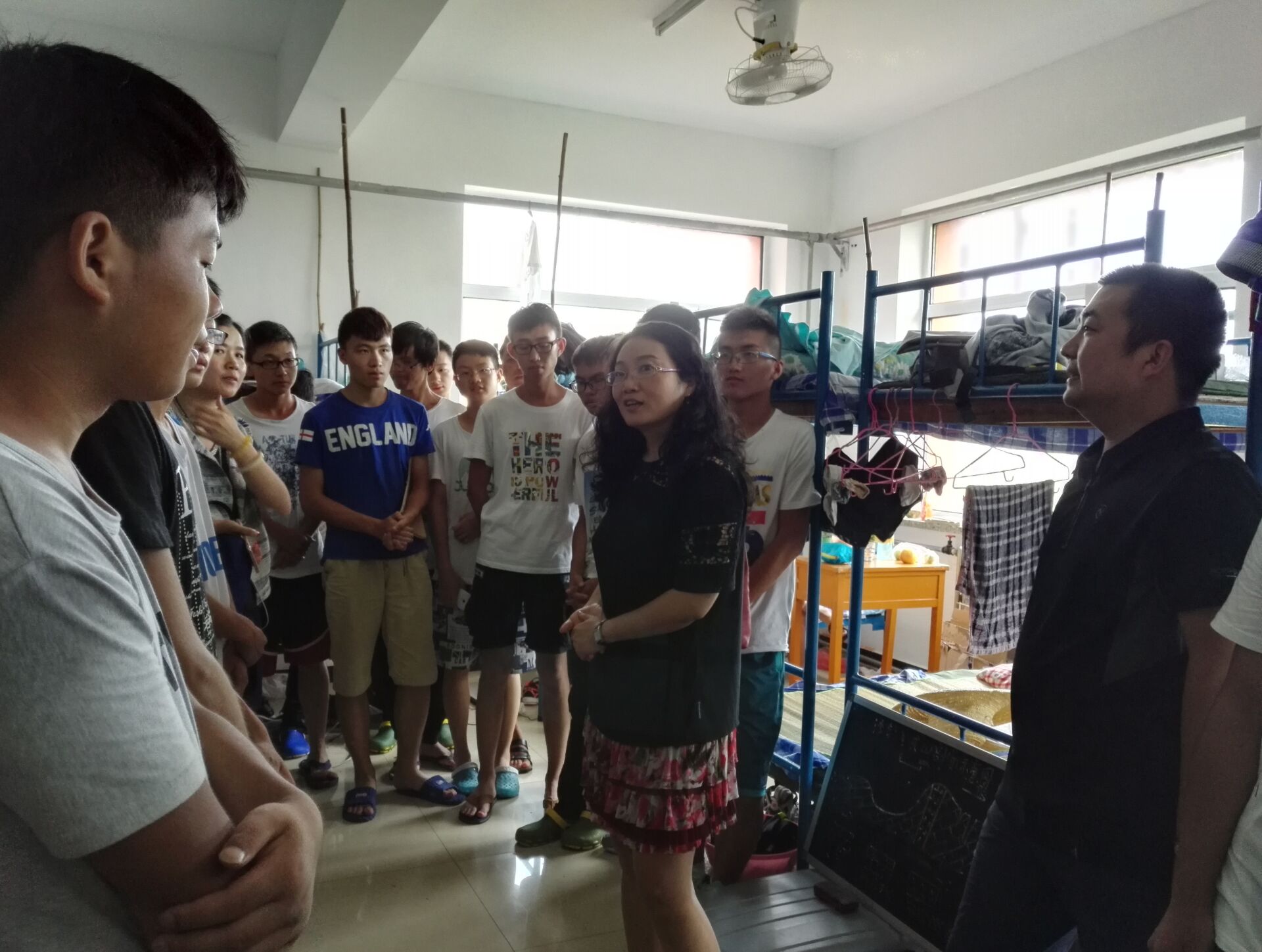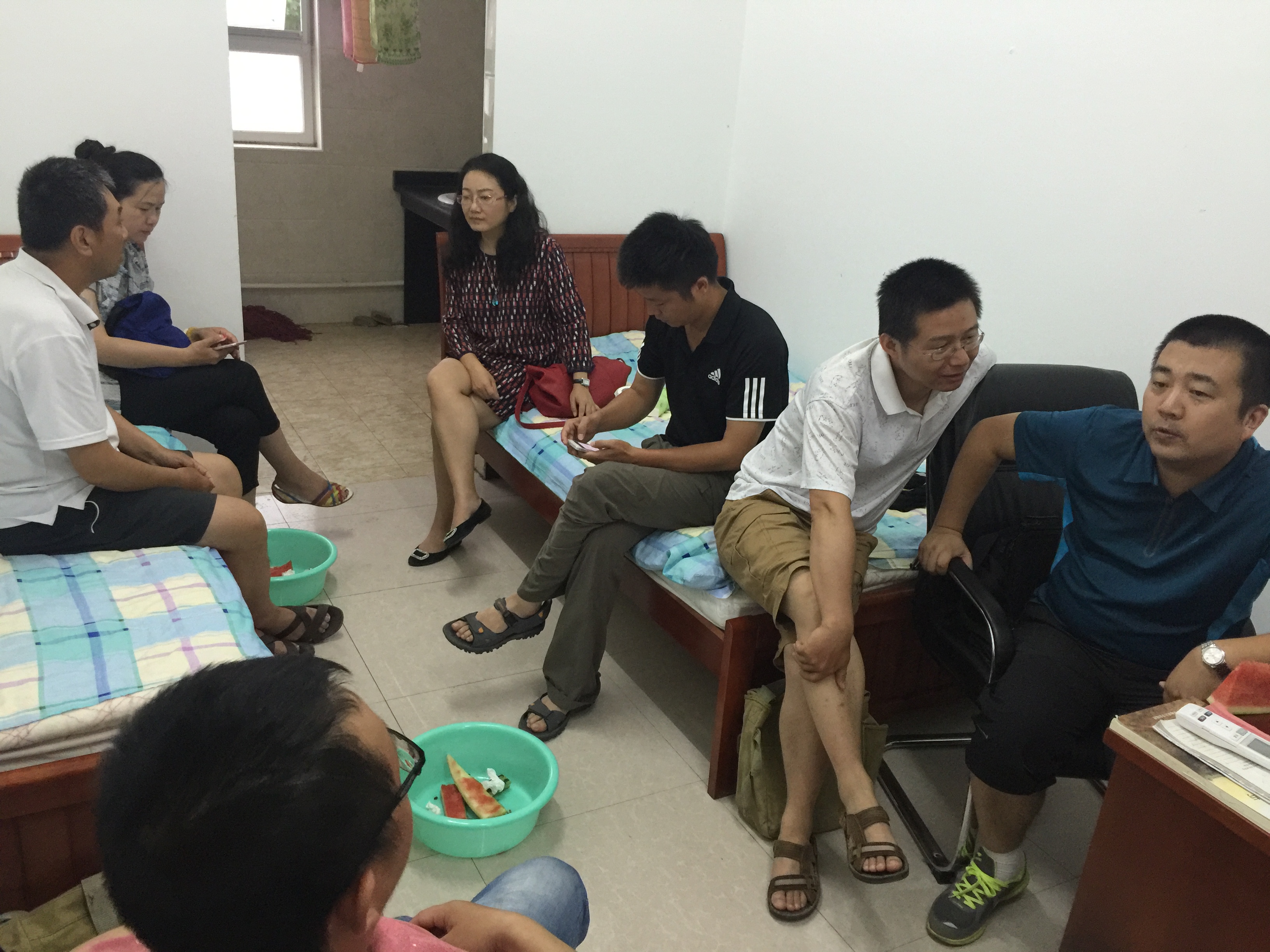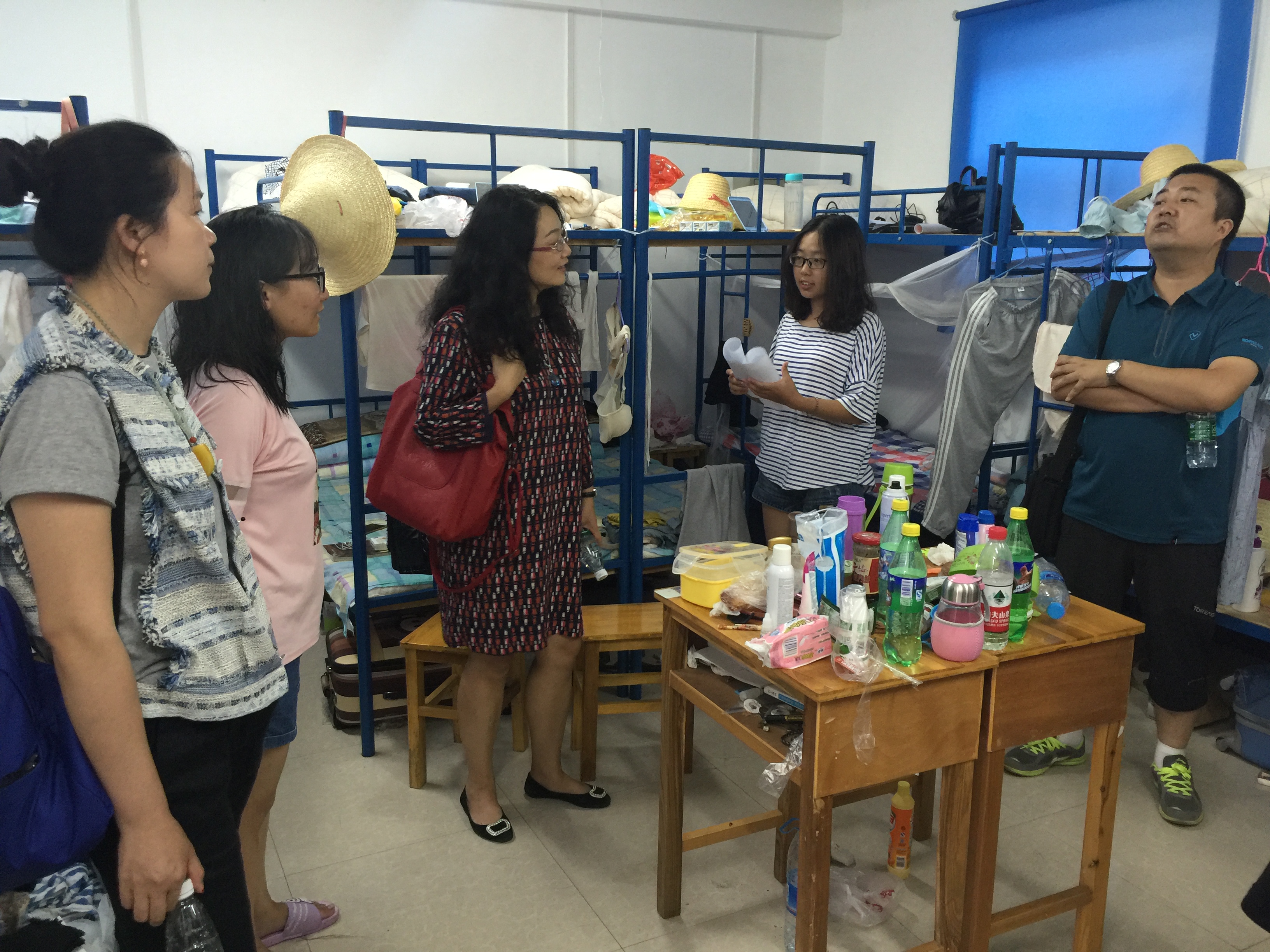 在14级、15级本科生辅导员的陪同下,郭秀蓉一行首先逐个宿舍去探望学生,关心学生在实习基地的学习和生活状况。在相互交流的过程中,对同学们吃苦耐劳和团结协作的精神给予肯定,鼓励大家要继承和发扬老一辈地质工作者艰苦朴素的优良传统,树立坚定的地质事业观,同时她叮嘱同学们要提高安全意识,做好防暑工作。