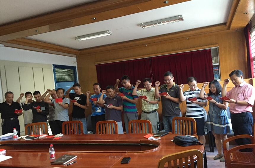 按照主题党日活动的要求,全体与会党员共唱国歌,并在孙华山同志领誓下重温了入党誓词,诵读党章,随后集体学习中组部《关于中国共产党党费收缴、使用和管理的规定》,并传达跳高高电子