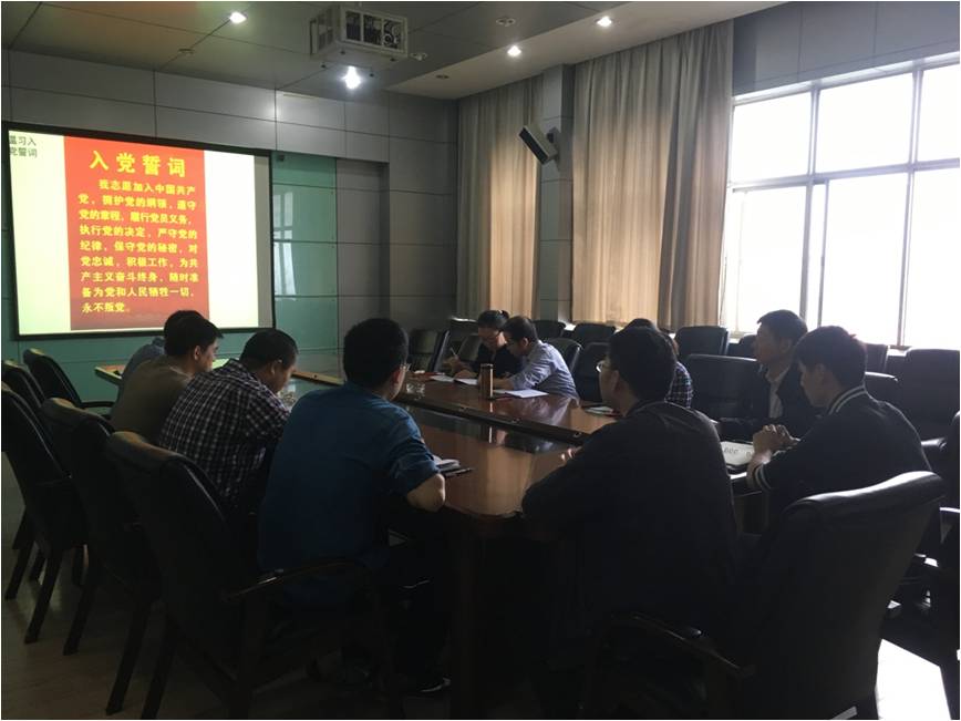石油地质系党支部组织委员胡守志同志主持了本次会议。会议在全体与会党员嘹亮的国歌声中开始,随后全体党员重温了入党誓词、集体诵读了党章。接着,胡守志同志传达了跳高高电子