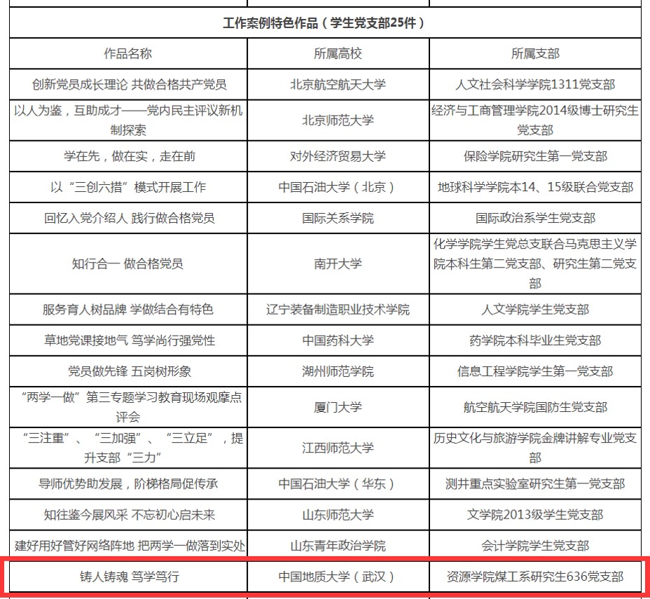 层面的评比。2016年研究生示范党支部评选活动中,煤工系研究生636党支部获评校研究生“十佳党支部”;在跳高高电子