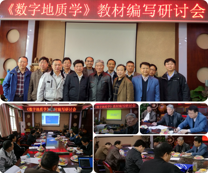 等教育科研单位的十余位专家学者。在研讨会上,赵鹏大院士高屋建瓴地阐释了新编教材的定位与愿景,特别是大数据时代数字地质学的发展机遇及教育使命,对数字地质学做了精辟的论述。各校专家对本校数学地质学科的教学现状及现行教材进行了介绍,对新教材拟定大纲进行了严谨认真、生动活泼、卓有成效的商讨,形成了知识体系清晰、篇章结构合理、教学实用性强、专业适用性宽的教材大纲,并计划在今年年底基本完成初稿。