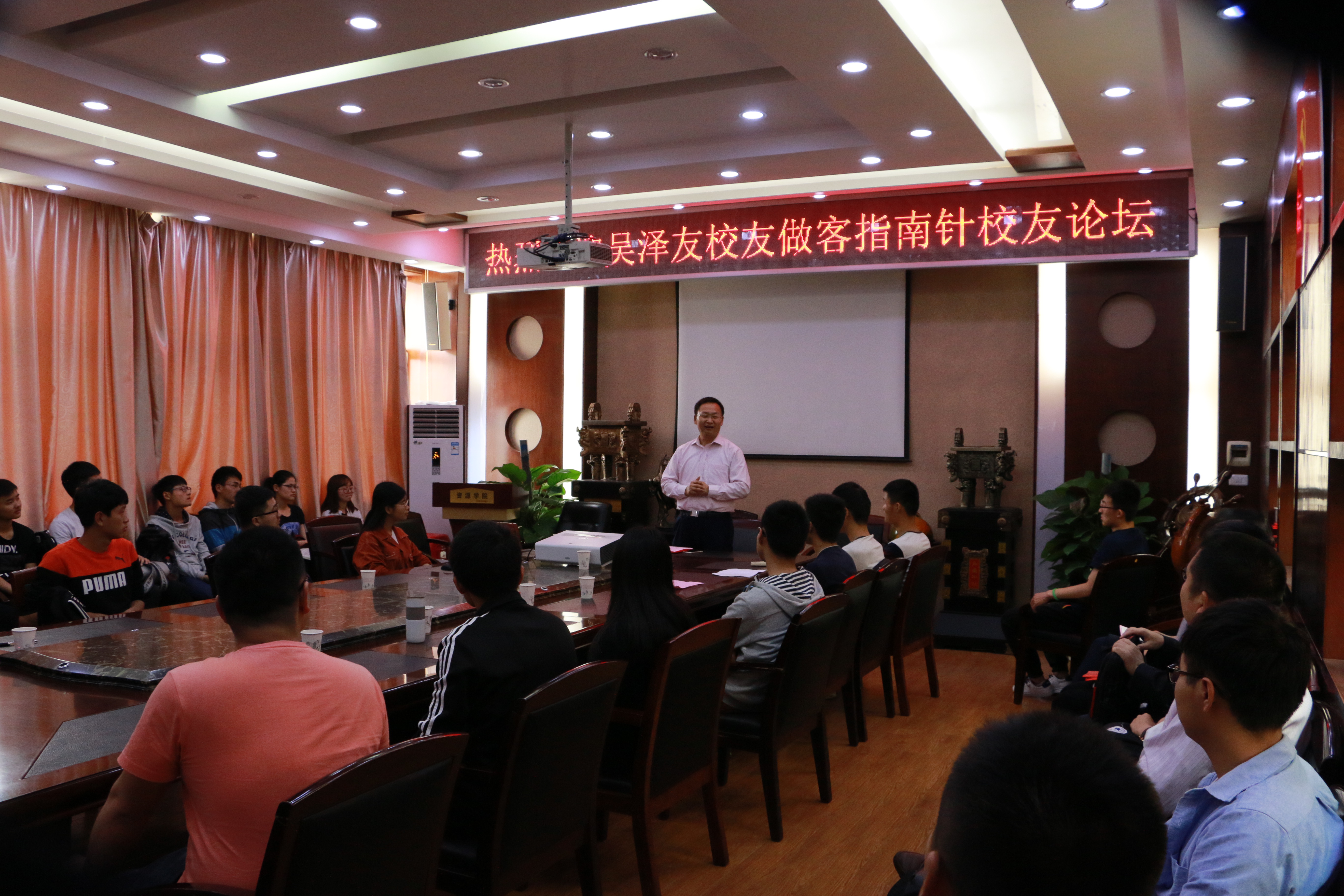 捐赠仪式结束后,吴泽友做客“指南针”校友论坛,与师弟师妹共话成长。他以“跳高高电子
