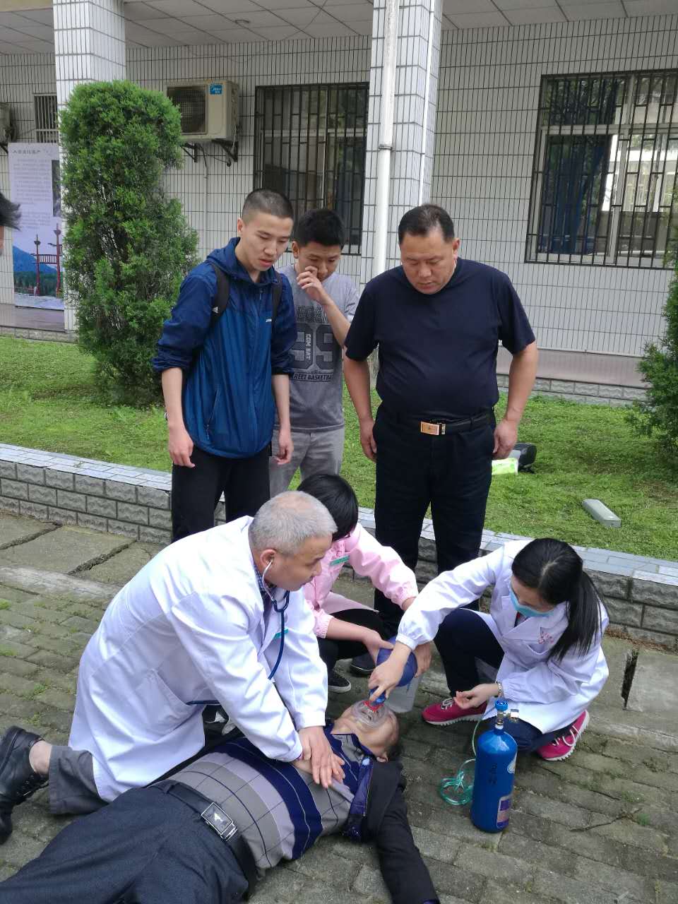 一名同学发现一位老人晕倒在地,当即把老人扶至阴凉处休息,并拨打120求救。在询问老人病情和家人信息时,老人突然再次昏迷,随后三名同学再次拨打120询问急救知识,在120指导下轮流进行心肺复苏,此时保卫处老师也及时赶到并联系校医院医生,14时05分,校医院医生赶来开展急救工作,经过多方人员近半个小时的努力,老人终于恢复心跳,随后被医护人员送往医院救治。