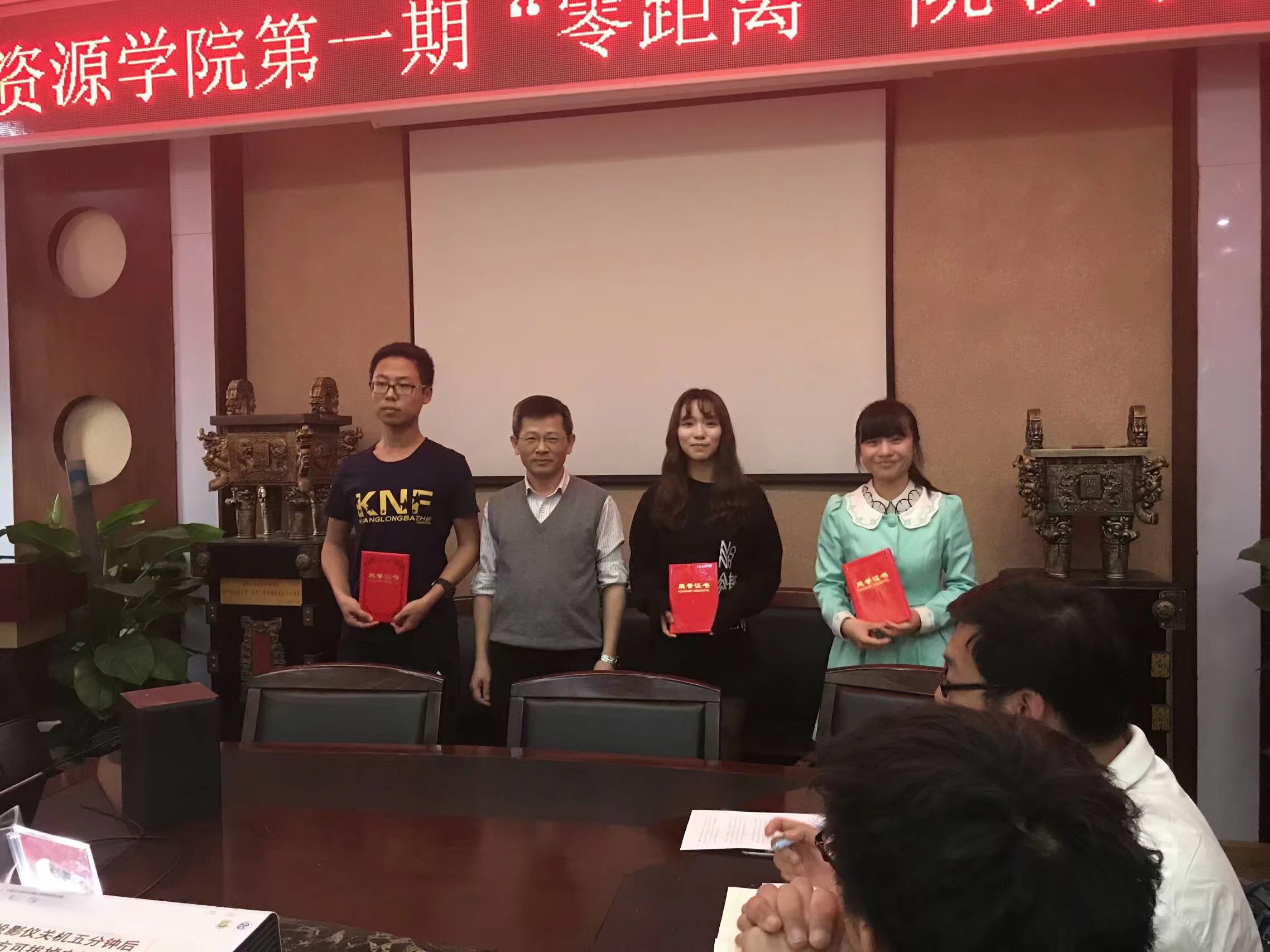 经费投入、发挥导师制作用、本研一体化培养等方面进行现状分析、可行性建议。然后是张建华分析目前就业形势、并向与会同学们拓展了相关就业信息渠道,建议大家提前着手准备。随后的现场提问环节,多位学生代表就学科交叉、班主任作用、对外交流的平台、推免考研政策等方面提出一系列问题,都得到了院领导的一一解答。最后,李建威院长为获奖三位提议优秀的同学颁奖,之后主持人宣布本次院领导接待日圆满结束。