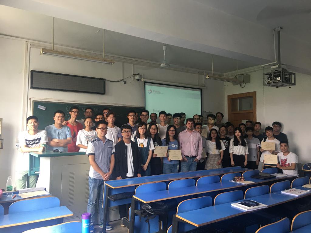 为石油相关专业的学生讲授了TOTAL公司全球性TPA课程“Petrophysics:Core Analysis-Laboratory Measurement”。此次课程共选拔了包括本科、硕士、博士及留学生,共计50名学生参加。