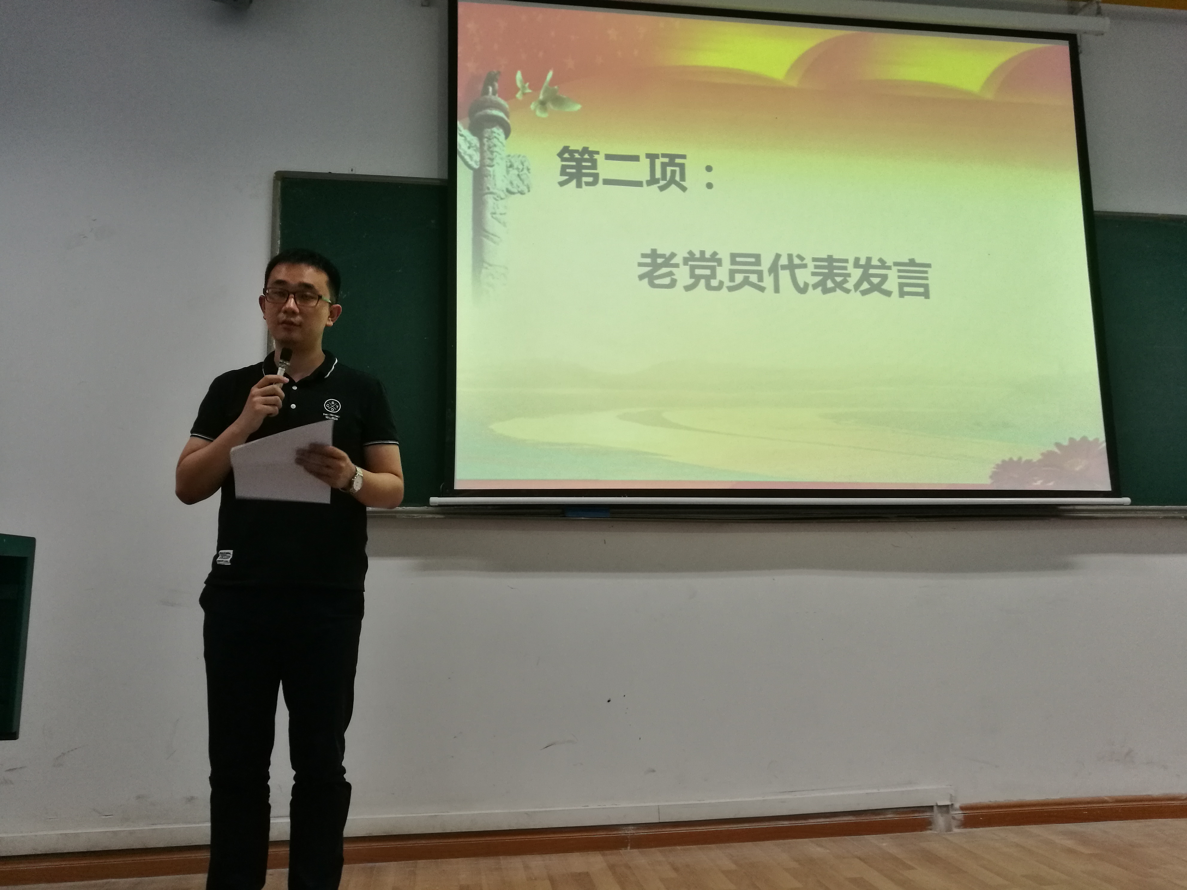 会议伊始,在主持人致开幕词之后,在场人员全体起立奏国际歌。随后,老党员代表李强同志发言。李强回顾了自己加入党组织的过程,畅谈了自己在党组织的培养下逐步成长的经历,同时也对在场的新党员提出要时刻牢记党员身份,牢记全心全意为人民服务的深切希望。接着,李强带领所有新党员宣读入党誓词。宣誓仪式结束之后,新党员代表谢雨彤进行发言,谢雨彤表达了加入党组织的激动与兴奋之情,同时表示自己会向优秀党党员学习,在未来的日子里讲学习、讲正气、讲奉献,更好的服务于党和人民。