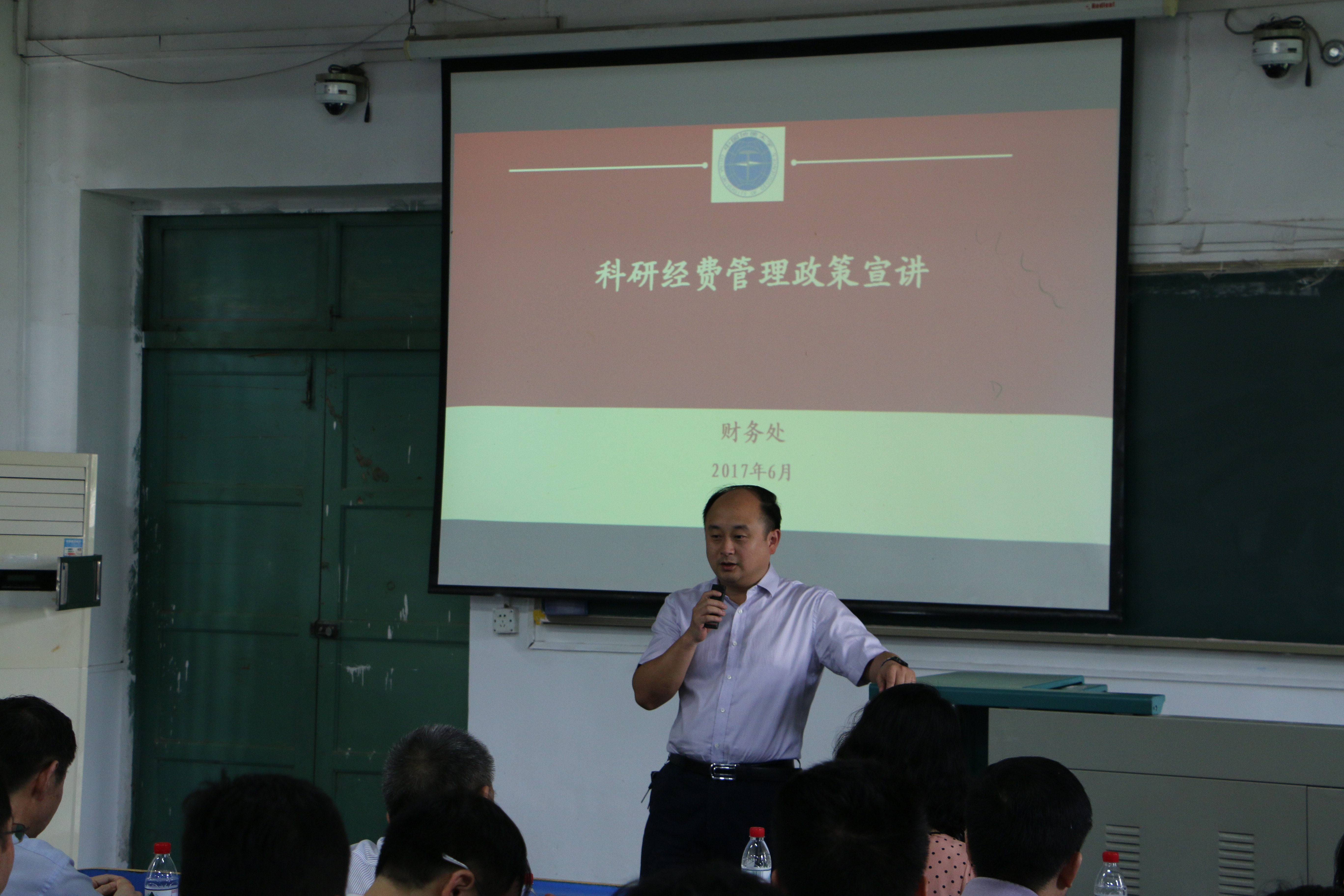 大会第一阶段,由财务处、科学技术发展院进行科研经费管理政策宣讲,宣讲由财务处处长张玮带队,财务处副处长马晓霞、科研管理科科长鄢琼伟、会计科科长刘锐军和科发院科技发展办公室科长田永常参与了宣讲。