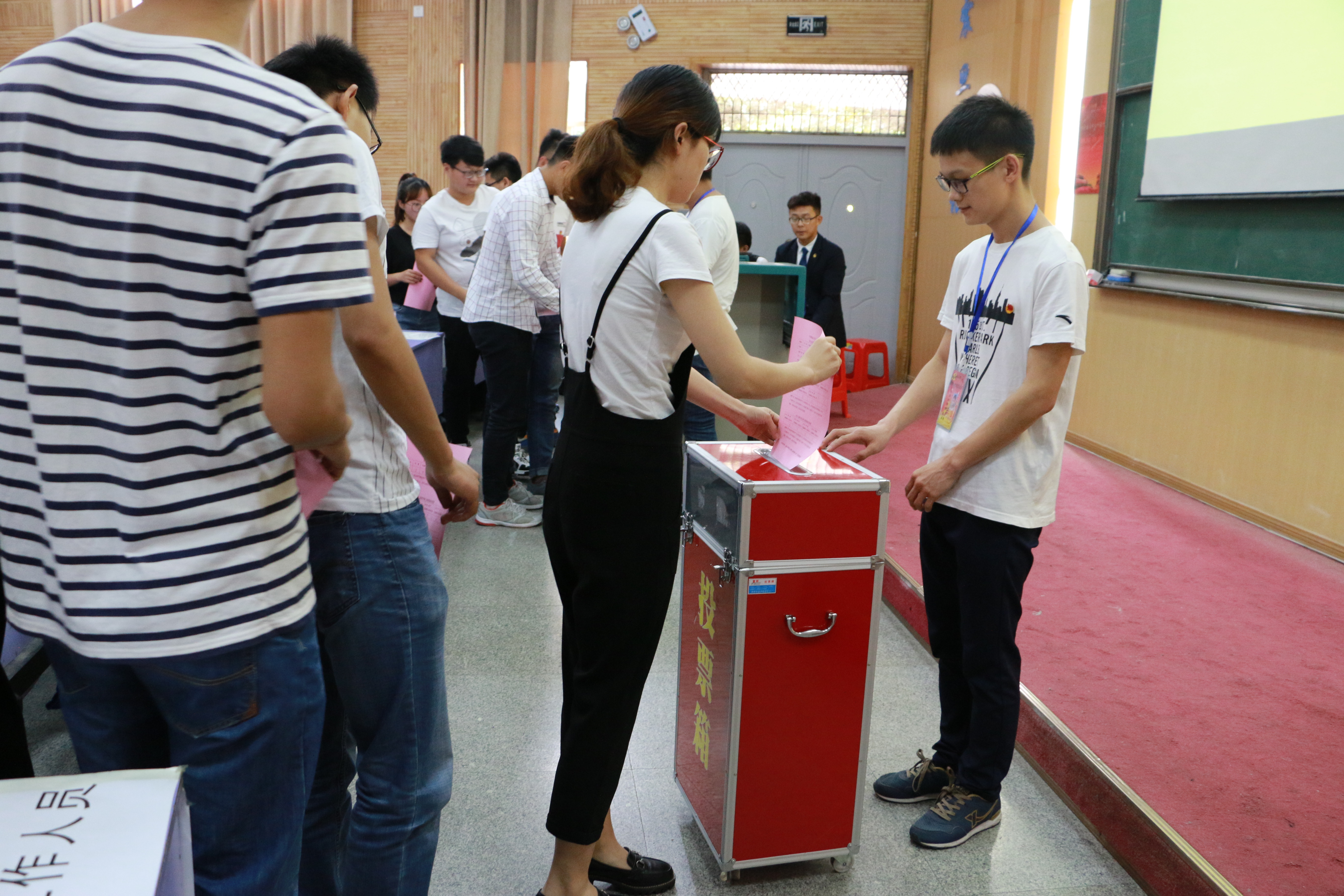 与会代表填写选票并投票。投票选举了第七届学生委员会委员,及资源跳高高电子