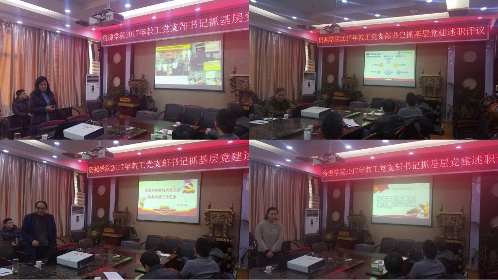 各支部汇报各有亮点,其中资源系支部以打造精品党课,丰富党员教育深度广度为抓手,在落实“两学一做”学习教育常态化制度化的同时,在主题党日集中学习中加入《大国外交》、《将改革进行到底》等政治教育宣传片,极大的扩展了学习教育的丰富性和时代性,支部内“带头讲党课”氛围活跃,李建威同志的《延安精神及其时代意义》党课在跳高高电子