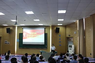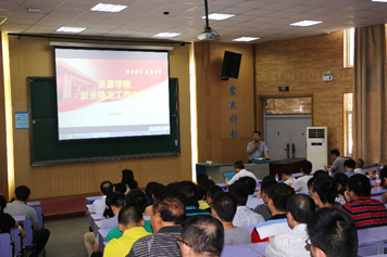 在教三楼110召开全院大会,院党政领导及百余名教职工出席了大会。院党委书记郭秀蓉主持会议。