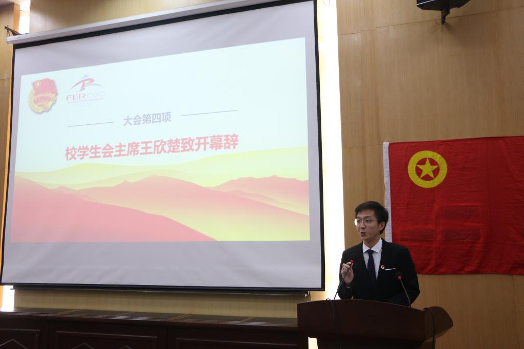 (武汉)学生会主席王欣楚致开幕辞。他表示,新时代的青年应该在修己之路上常怀为公之心,在放大格局中不忘追求精致,为我们的地大梦、中国梦做出更大贡献。