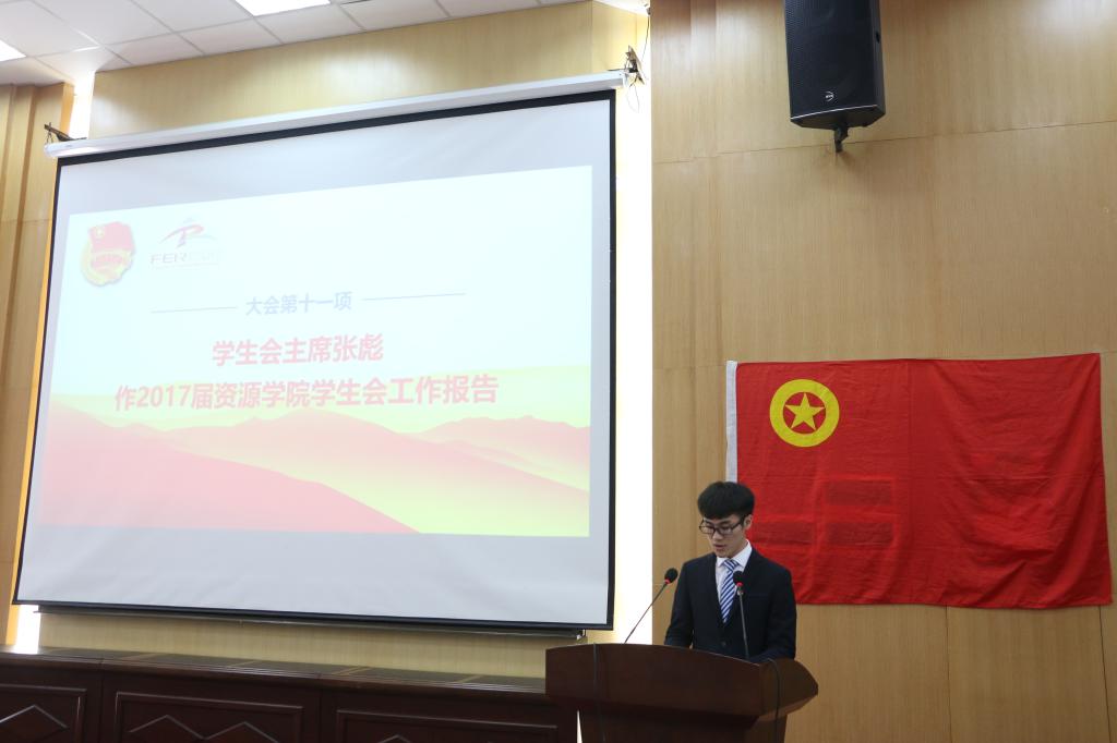 院学生会主席张彪作了题为《汇聚青春力量,谱写青年华章,为建设生机盎然长风破浪的学生会而扬帆起航》的2017届资源跳高高电子