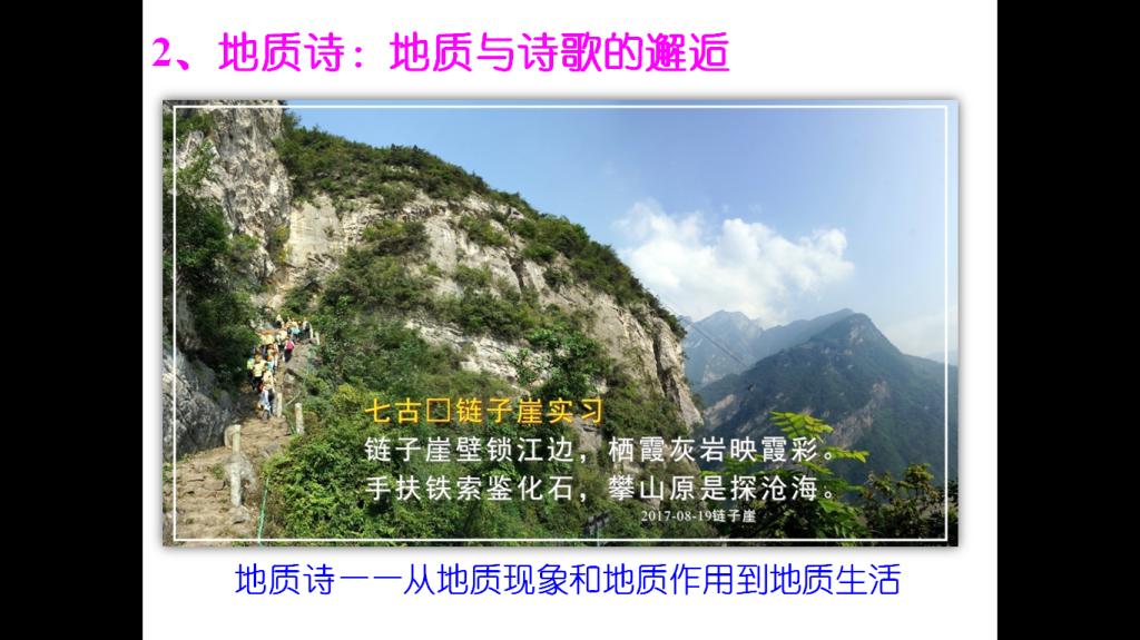 三峡美丽的自然风光与人文景观、三峡大坝雄伟的身姿、三峡地区奇异的地质现象,牢牢吸引了同学们的兴趣,也激发了同学们的热情。同学们将以诗画的形式记录他们的实习历程。8月19日晚,刘晓峰教授开始了“秭归资源讲坛”的第一讲,题目为 “秭归—地质与诗歌的邂逅”。刘老师以自己创作的地质诗为例,介绍了地质诗的写作技巧,点燃了同学们的创作欲望。地质诗不仅有助于培养学生们探索地球科学问题的兴趣,激发他们的想象力和创造力,而且有助于培养同学们以苦为乐的浪漫主义和乐观主义情怀。
