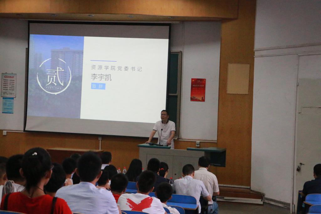 李宇凯首先致辞。李宇凯对390余名新生选择地大,选择资源跳高高电子