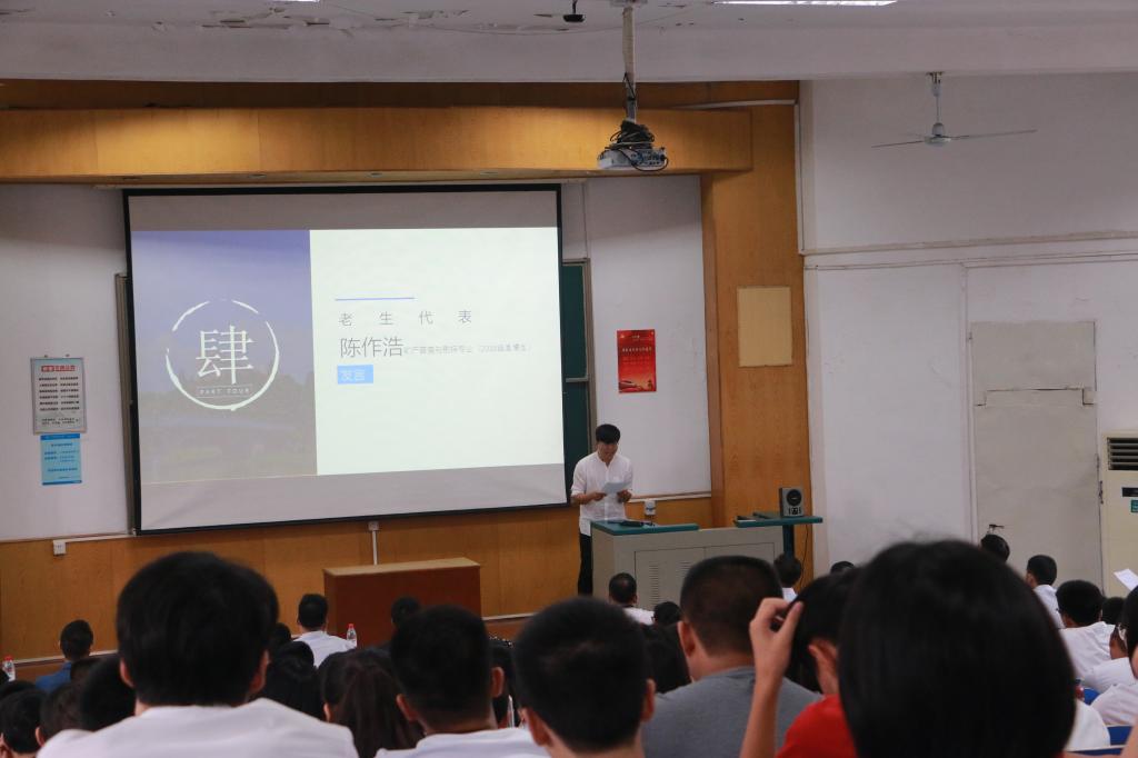 优秀老生代表陈作浩、杨锐分别发言。陈作浩以激情、规划、兴趣三个关键词为主题,将自己跳高高电子