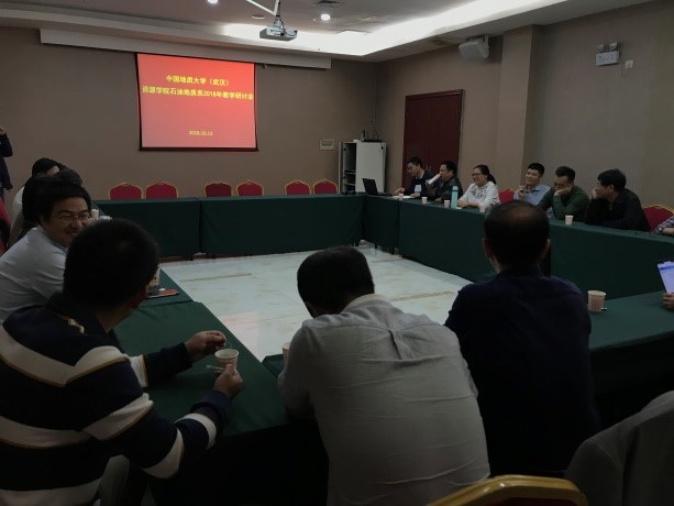 石油地质系新一轮教学团队建设以4年为一周期,自2016年底实施至今已近两年。本次研讨由叶加仁教授、周江羽教授、梅廉夫教授和胡守志副教授分别代表石油地质、沉积储层、构造和油气地化四个教学团队围绕教材建设、实验室建设、教学研究、课程改革、未来规划等方面进行了汇报,全体与会者针对汇报内容展开了热烈而充分的讨论,达到了教学团队间相互学习、取长补短的预期目的。