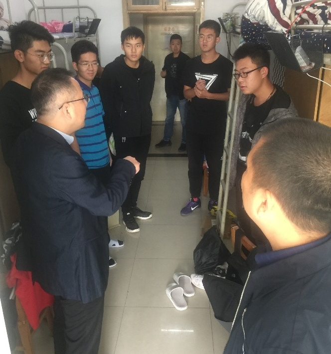 党委书记李宇凯、党委副书记张建华、学工组辅导员一行5人对学生寝室进行了走访慰问,与同学们亲切交流,以了解同学们的生活,倾听同学们的声音。