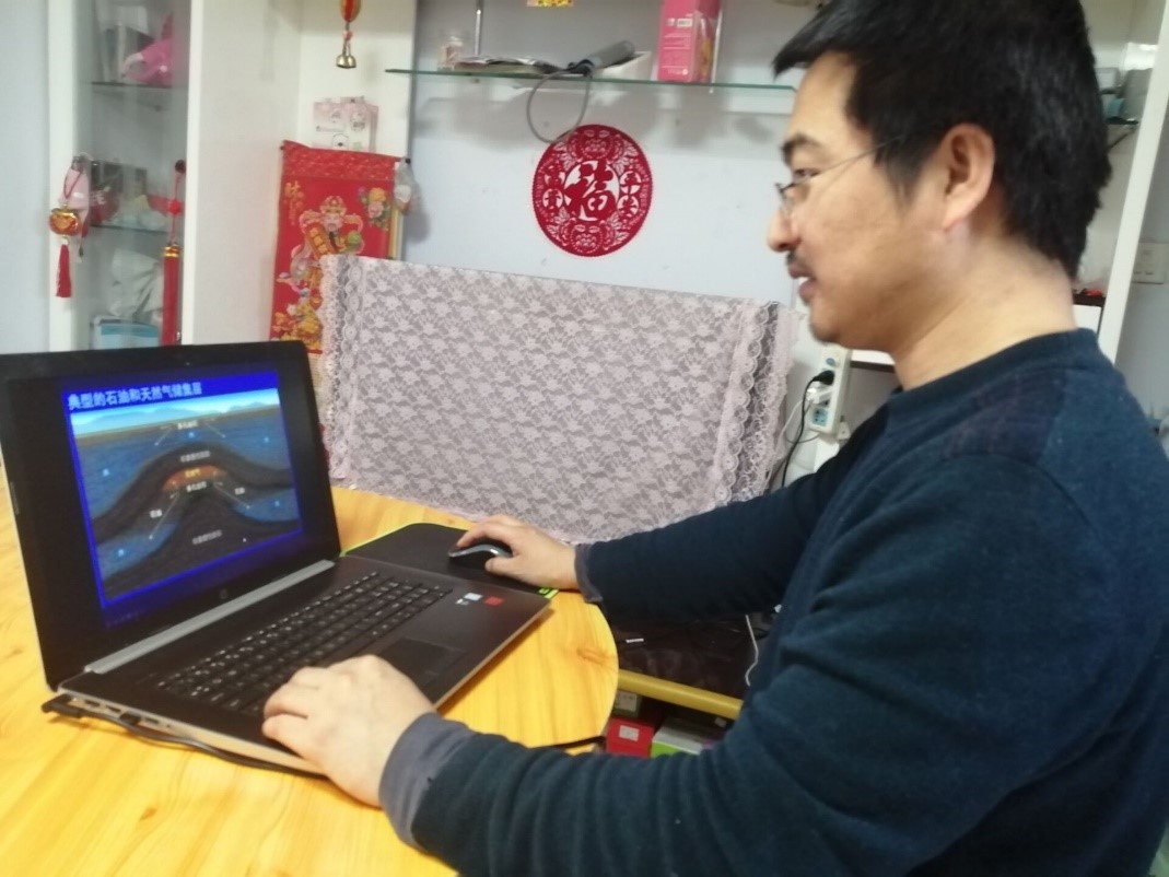 石油地质系胡守志老师,作为石油地质系教工支部书记,积极响应“停课不停学”的要求,克服种种困难,借助超星学习通和QQ群实现了《有机化学C》课程的网络教学。由于家里唯一的电脑女儿白天上课要使用,胡老师只能晚上提前录好速课视频,并在白天利用手机上课。针对该课程作业在PPT上不好讲解的问题,胡老师利用父母家居住在校园内的便利,借用一间小学教室,让自己的爱人帮助录了一次作业讲解的直播,解决了学子们学习上的疑惑。