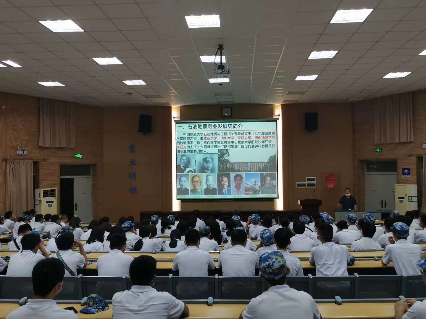 副院长沈传波教授、石油地质系陈红汉教授、周江羽教授、韩元佳教授在教三109教室,为2020级本科生作资源勘查工程新能源、油气方向专业报告,分析了石油工业的战略地位,勉励全体新生勤奋学习、刻苦钻研,立志成为著名的石油地质学家,为祖国石油工业贡献出自己的才华。