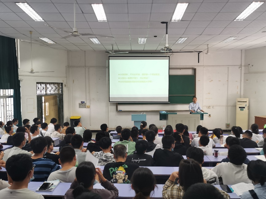 副院长严德天教授等在教三110教室,为2020级本科生作盆地矿产方向专业报告,并希望全体新生厚实专业基础、学好专业本领。