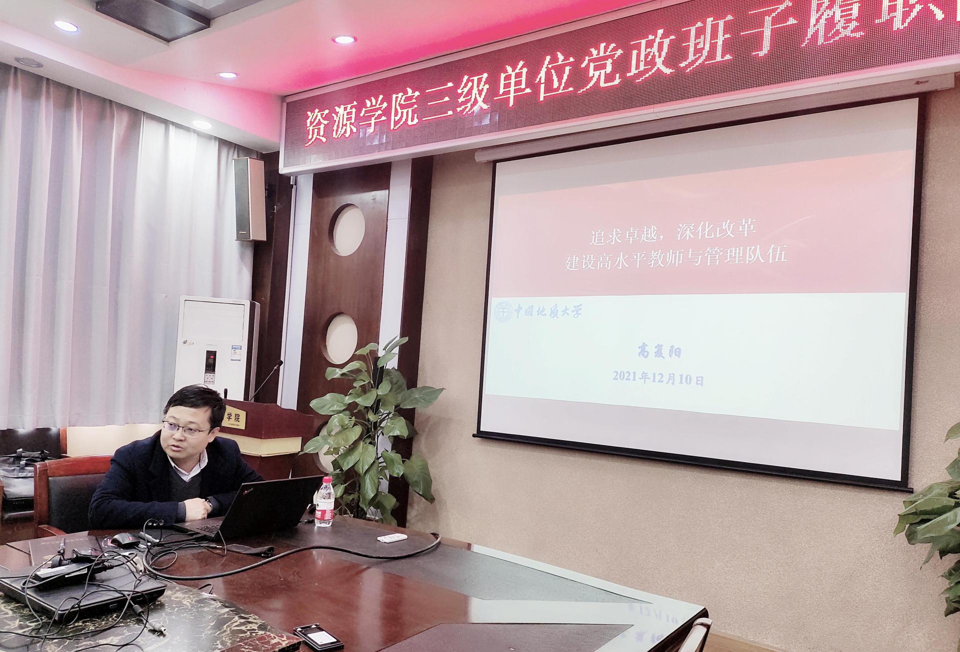 高复阳以“追求卓越,深化改革,建设高水平教师与管理队伍”为题,重点结合学习贯彻习近平总书记重要讲话精神,认真落实深化综合改革部署,紧紧围绕“十四五”改革发展和“双一流”建设目标任务,主要从师资队伍建设形势与任务、教师思想政治与师德师风建设、教师专业能力素质提升、教师业绩考核评价、青年教师队伍建设、管理干部队伍建设等六个方面作了专题培训。他领学了习近平总书记关于高校教师队伍建设的系列重要讲话、师德师风建设相关文件精神,通报了有关高校教师师德违规典型案例,结合跳高高