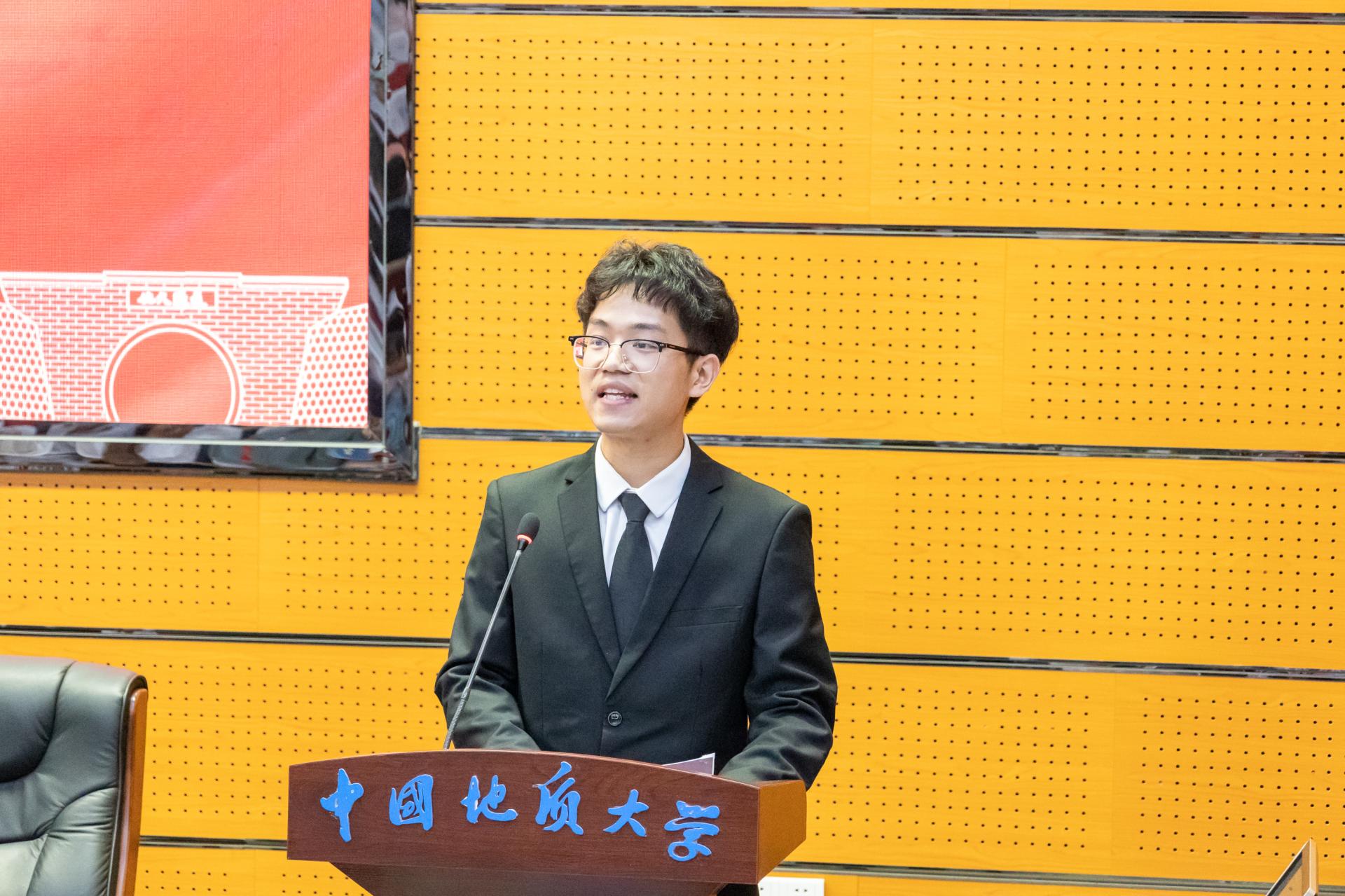 新生代表、021221班孔甘霖同学分享了自己与地大结缘的故事以及入学以来的感受,畅享了未来的大学生活,倡议同学们立足于时代要求,着眼于全球大势,锐意进取,激流勇进,做永不停息,无所畏惧的后浪。