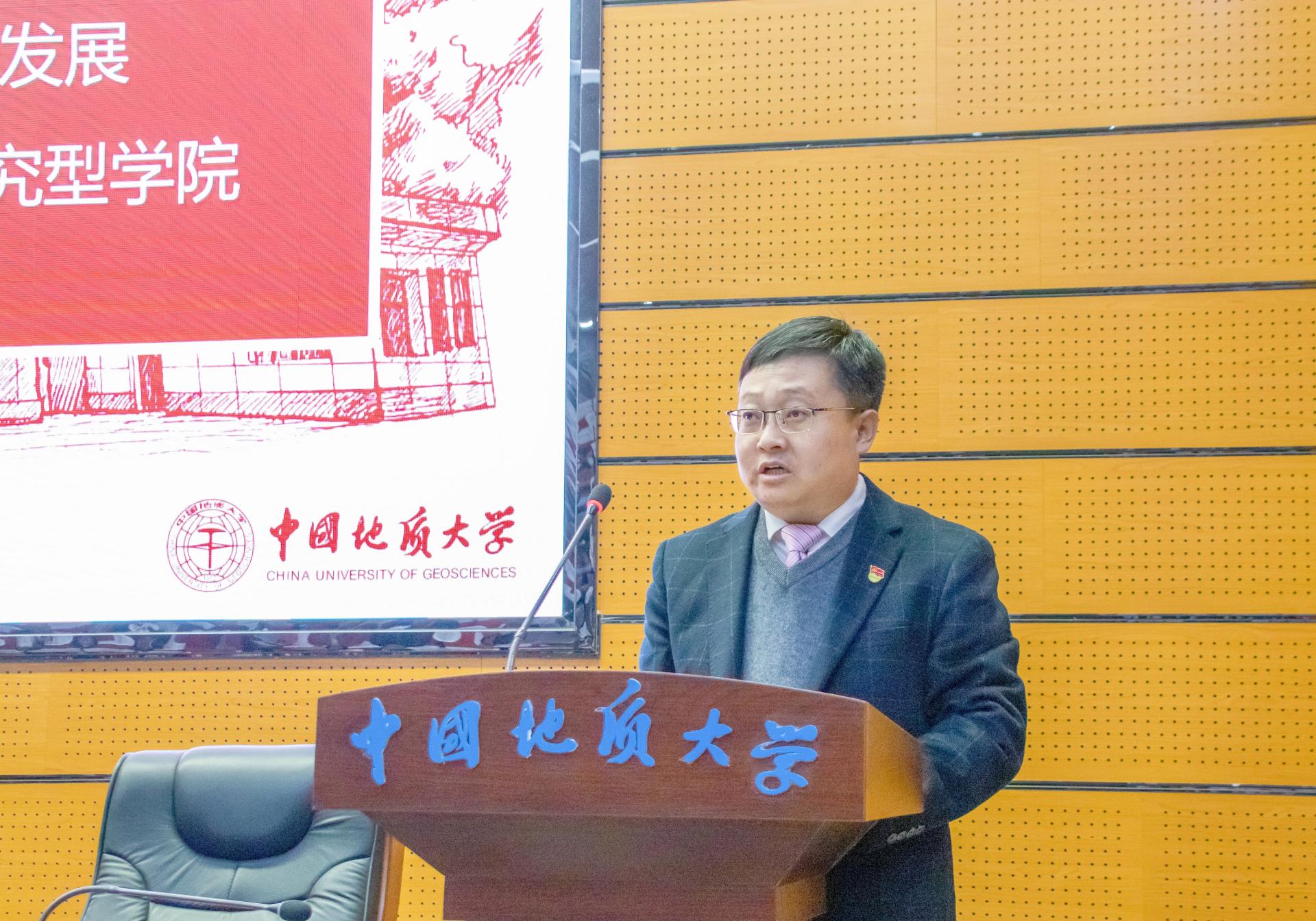 事业发展的政治领导和组织保障,打造一流党建工作体系,努力在创建全国党建工作标杆院系、样板支部中实现新突破。二是坚持人才强院战略,积极打造重大、重点项目科技创新团队,继续做强优势学科方向,进一步拓展新工科方向,全面提升学科建设水平。三是坚持“四个服务”,扎实推进一流本科建设,不断深化研究生教育管理改革,推进以“李四光精神”教育为核心的思想政治工作体系建设,大力培养资源能源领域拔尖创新人才。四是抢抓新一轮找矿突破战略行动机遇,深化学科融合、科教融合、产教融合,推动学科链、人才链、创新链和产业链互联互通,强化有组织科研创新,全面提升服务国家重大发展战略能力。五是深刻总结办学70周年经验,加强跳高高