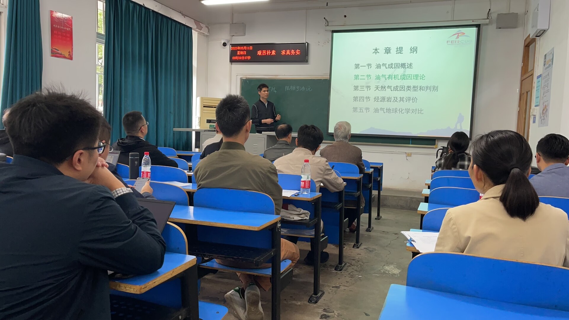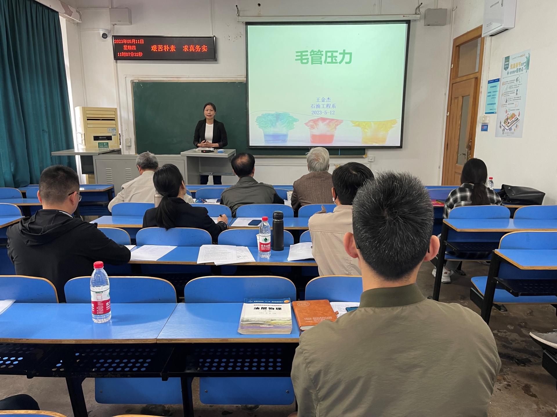 在相关专业领域做出了重要的工作,提升学生对专业的认同。孟庆帮老师用清晰的示意图和公式推导讲解了难度较大的《油气层物理学》中的单组分体系的相态特征,重难点突出,课程具有层次性。伏海蛟老师在《普通地质学》的断层的定义与分类讲述中融入了大量的地质现场图片,使学生获得直接的感受,理论与实际相结合。他讲解了我国古代诗人笔下的地质现象,两者结合引起学生对地质的学习兴趣。付乐兵老师在《矿产勘查理论与方法》的矿床勘查与储量估算的讲述中通过回顾上节课、提问等方式帮学生梳理知识,启发思维,他在介绍课程起源时提到跳高高