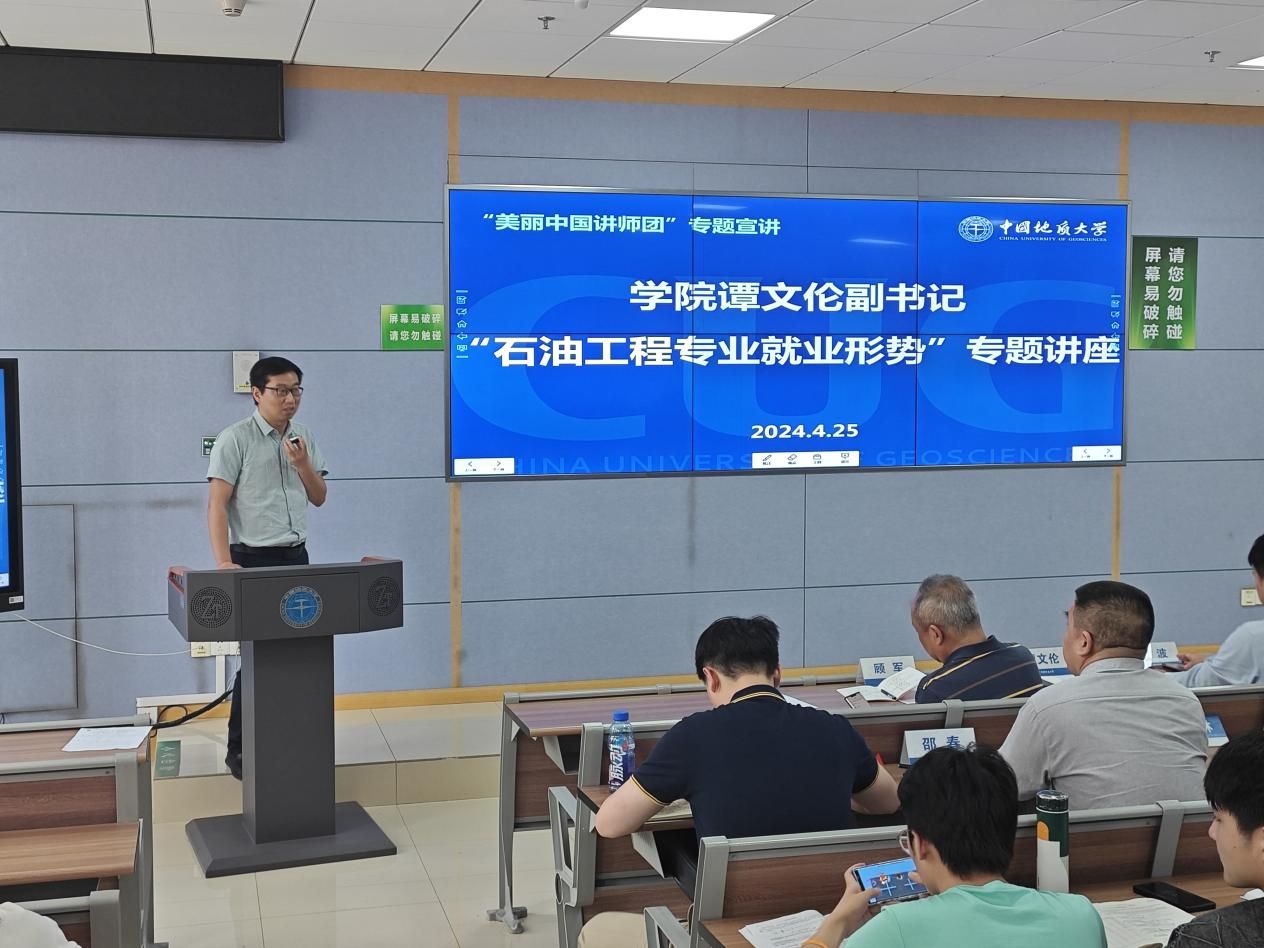 接着,谭文伦作“石油工程专业就业形势”主题宣讲。他介绍了石油工程专业在招生、转专业、就业等三个方面的情况,深入梳理和分析了近十年来石油工程专业的就业形势,并围绕学生招生、培养和就业等方面提出了有组织开展招生宣传、推进学生双创赛事、加大跳高高电子合作