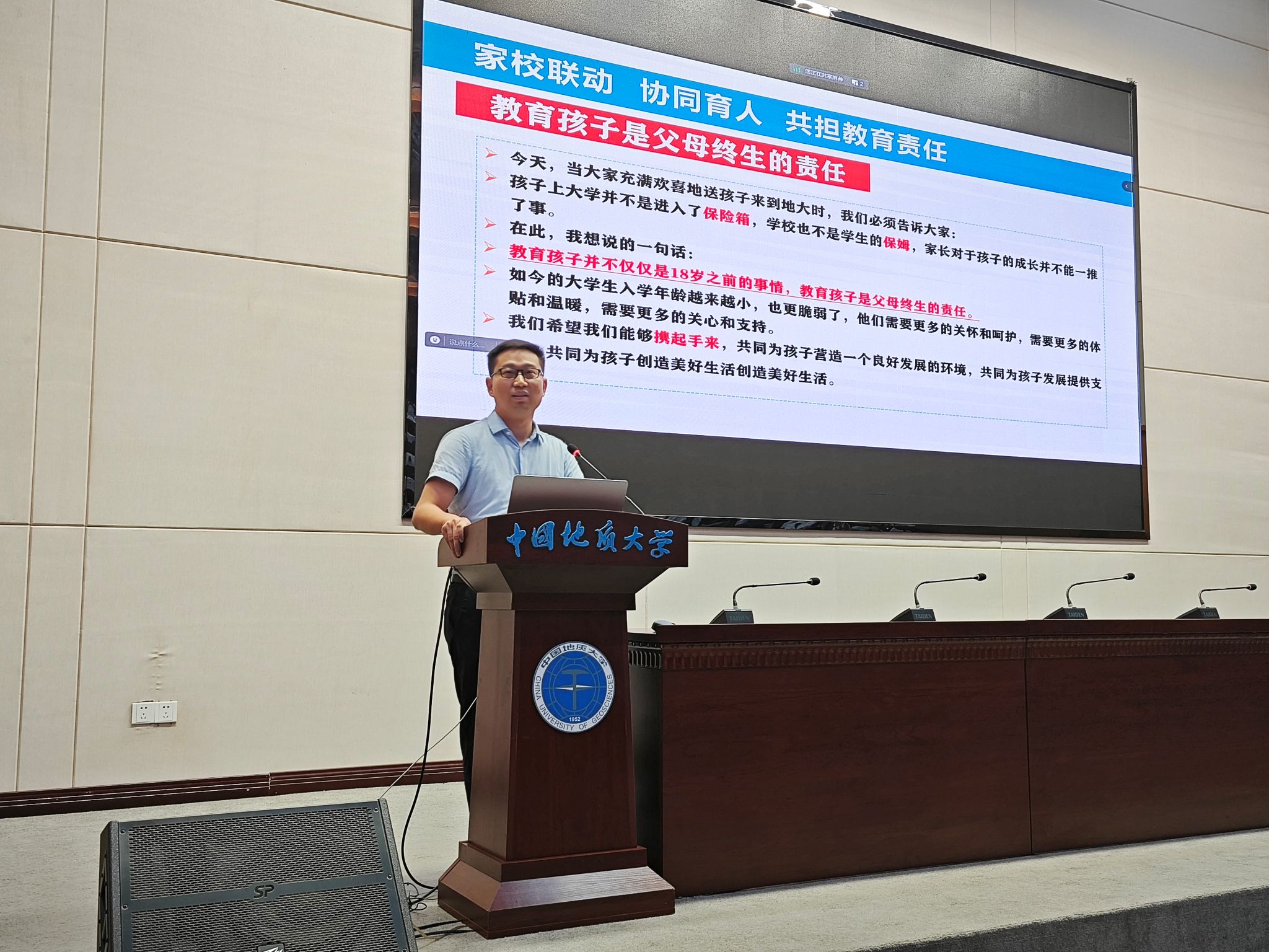 谭文伦以“家校协同育人,共担教育责任”为主题,从人生引导、生活支持和感情交流等方面介绍了跳高高电子