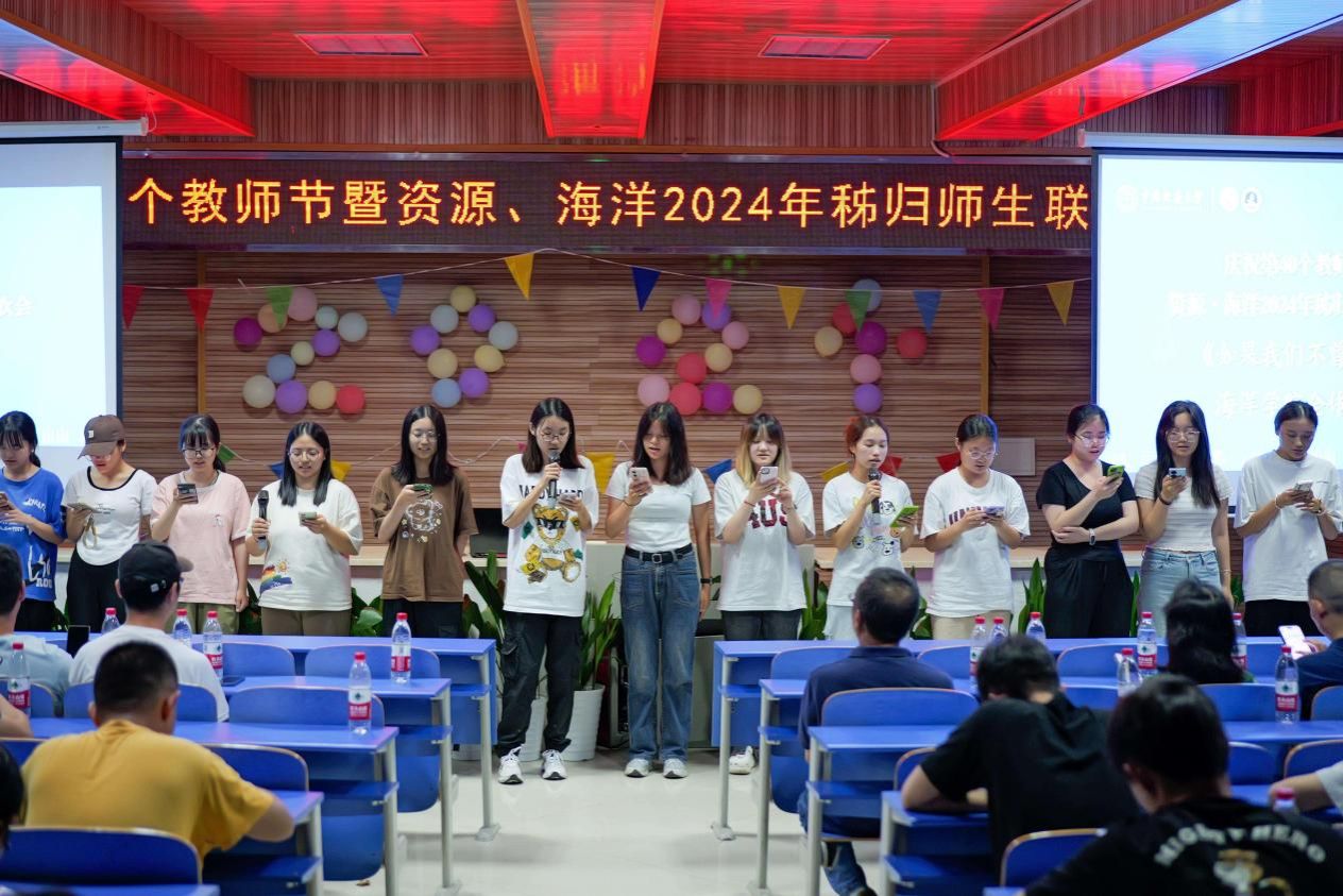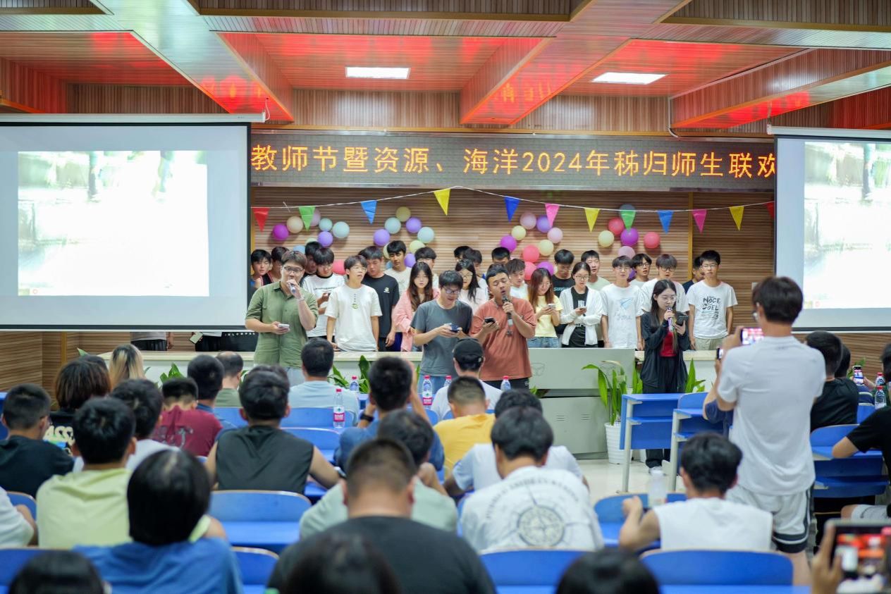 的师生们欢聚一堂,在秭归实习基地共同举办“庆祝第40个教师节暨资源、海洋2024年秭归师生联欢会”。资源跳高高电子