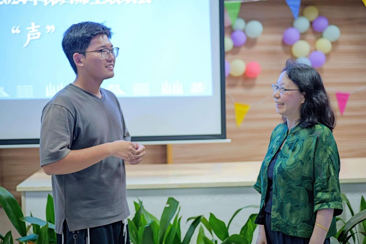 的学生们也纷纷登台,用歌声和朗诵表达了对老师的感激之情。陈大康同学以一首《落叶归根》深情地表达了对家乡的眷恋与对师恩的感念;金涵翔、孙岳璐、陈权和李一鸣四位同学共同朗诵的《赞美》,则以诗为媒,展现出对老师无尽的敬仰与感激之情;王宣淳同学的《告白气球》以甜美浪漫的旋律传递出青春的美好与纯真;吴君同学的《海芋恋》则带领师生们穿越城市的喧嚣,感受海风的轻拂与海浪的低语;张浩扬同学演唱的《学不会》,歌声婉转悠扬,蕴含着脉脉深情。