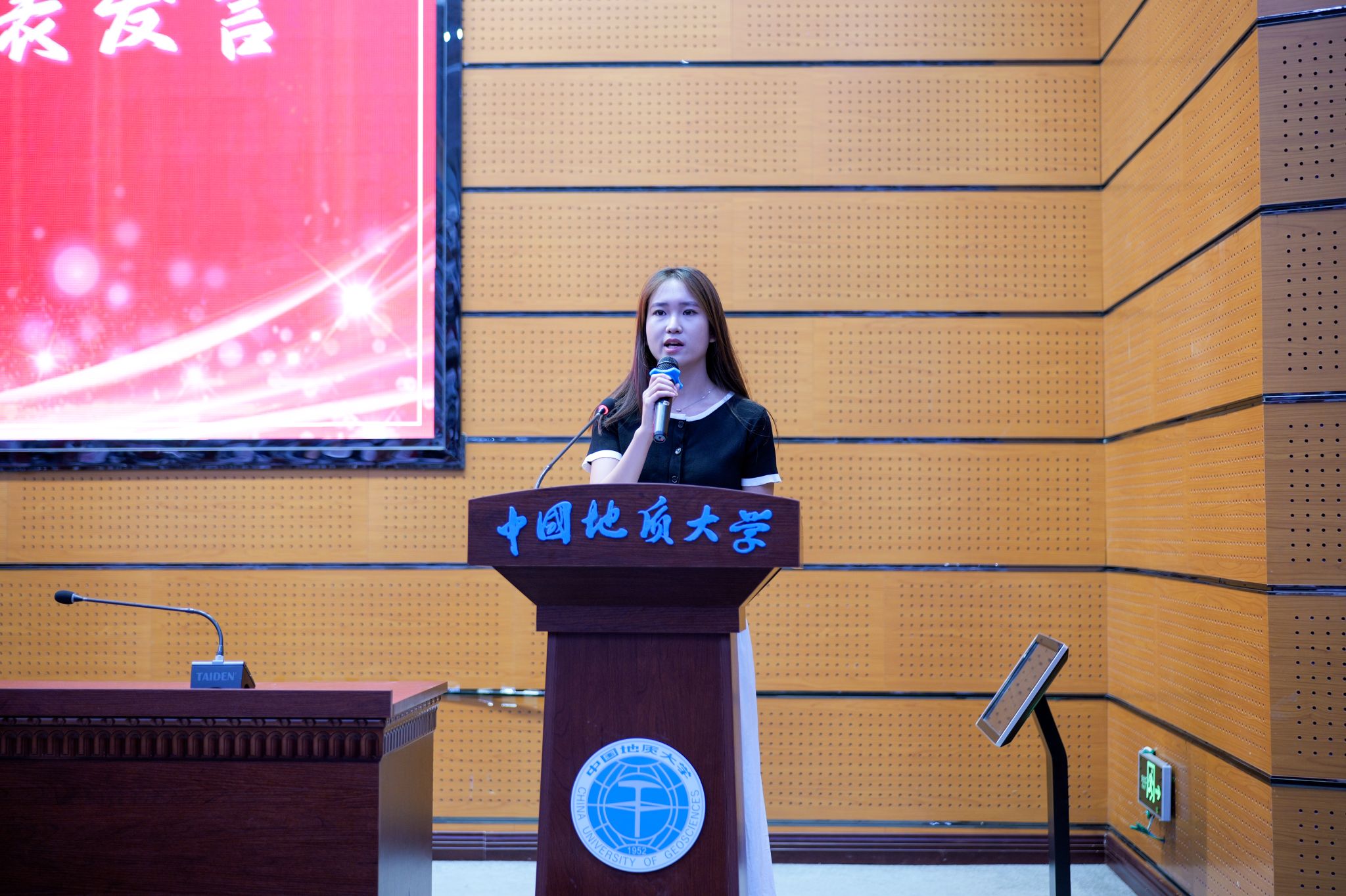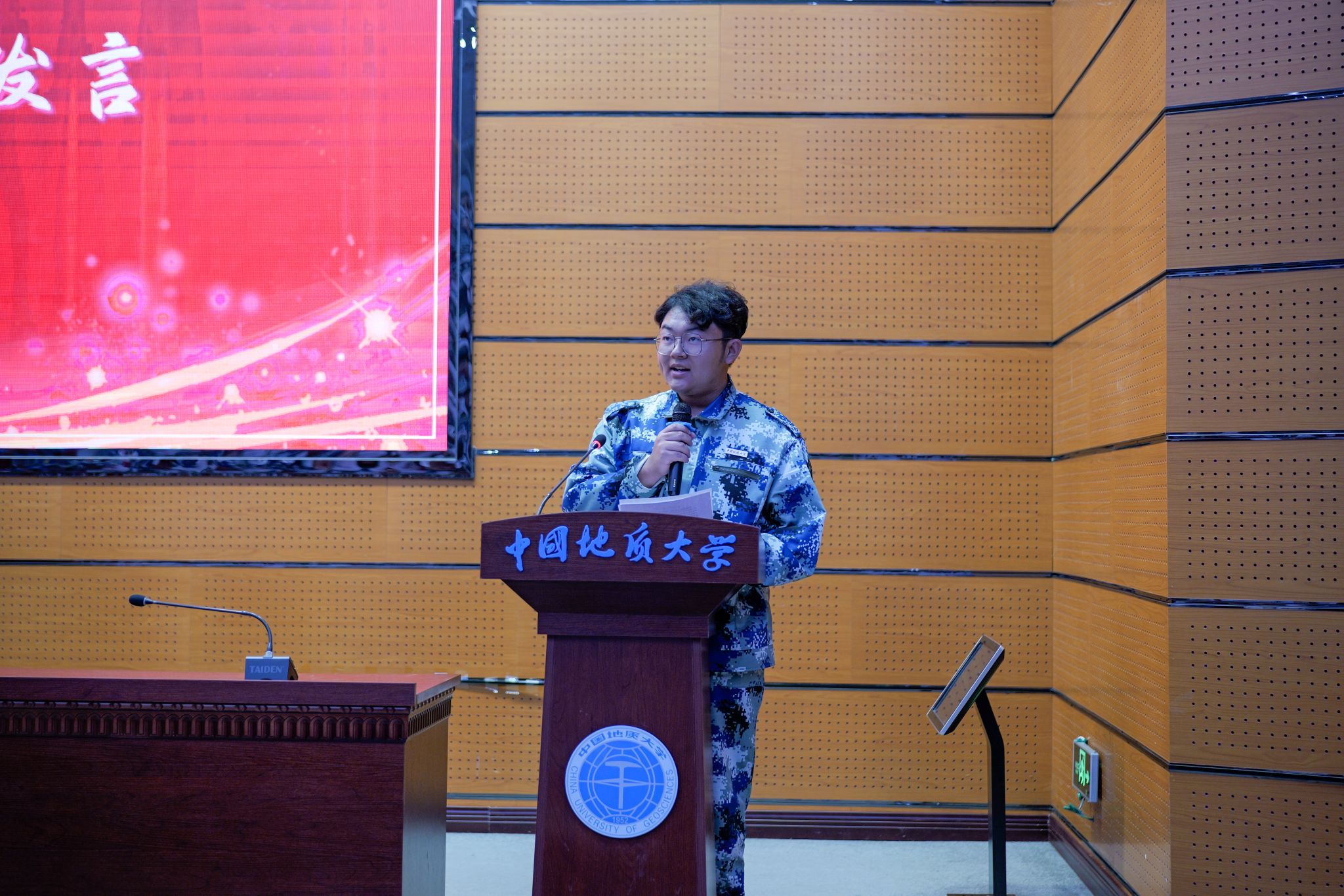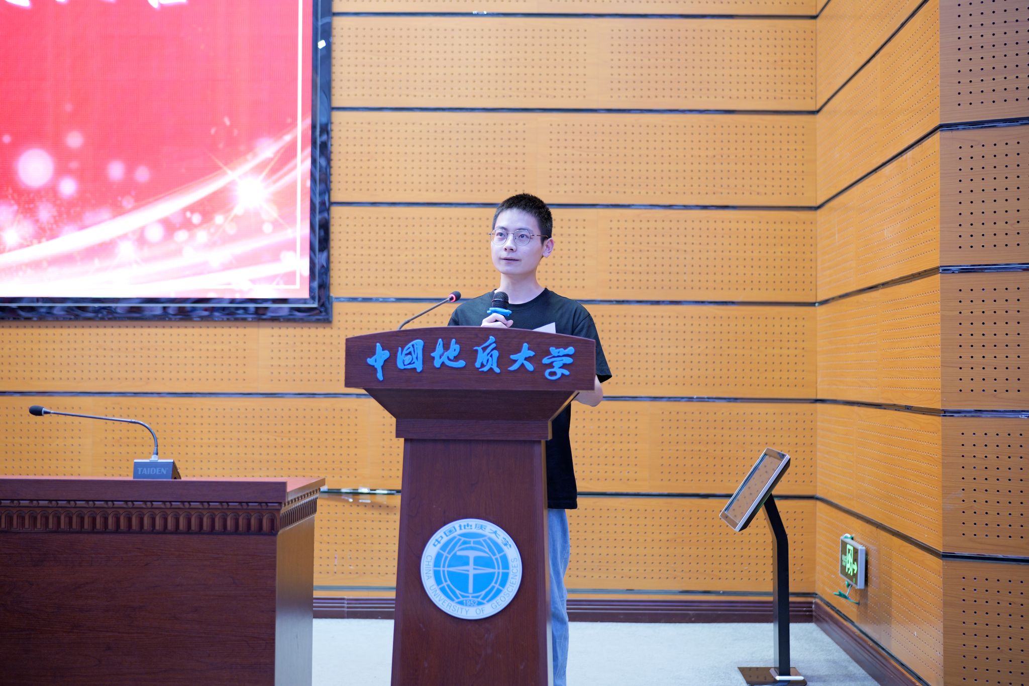 本科生新生代表、石油工程专业薛家铭跟同学们分享了他与地质工作的结缘以及对地大资源跳高高电子