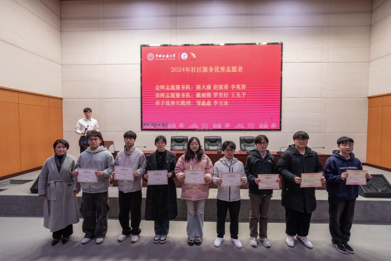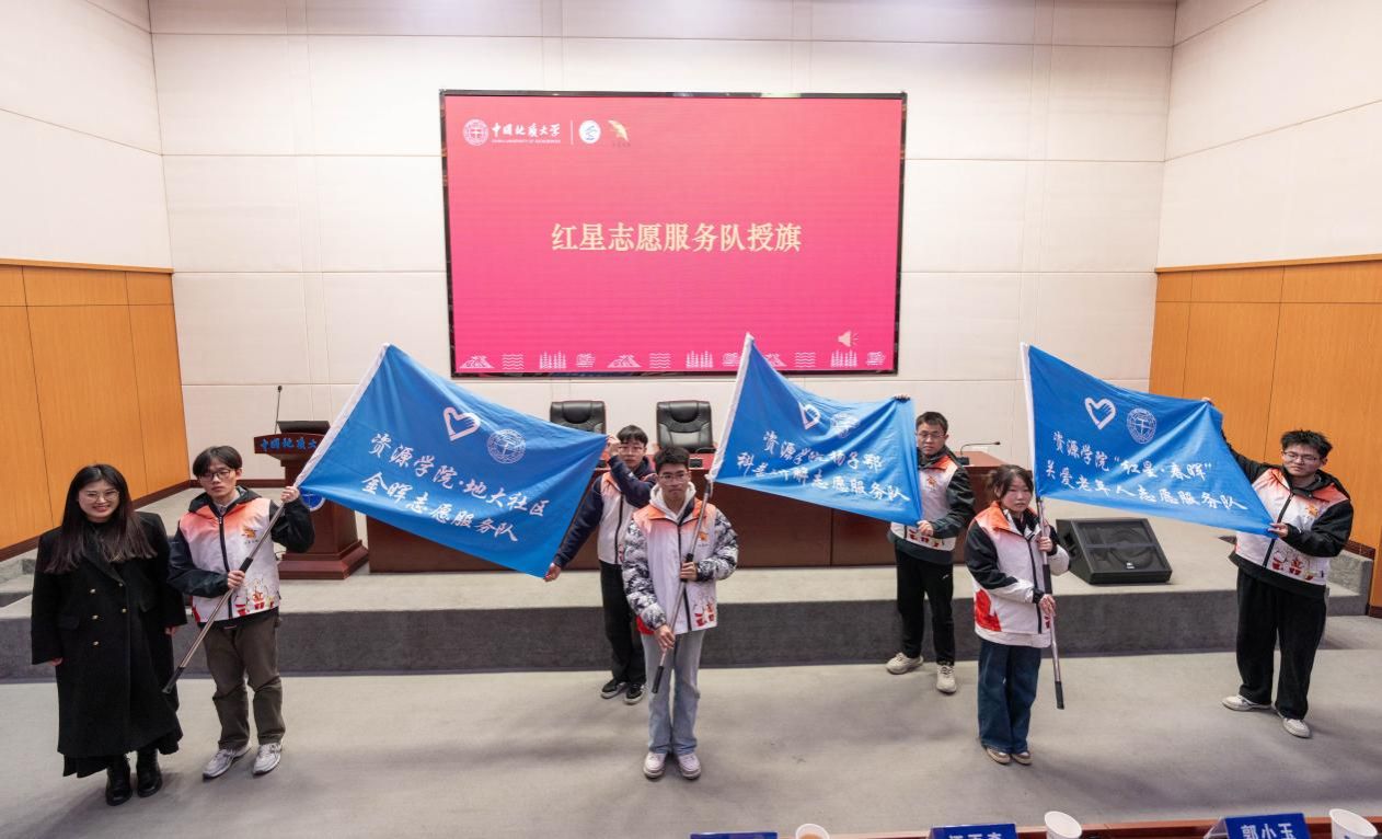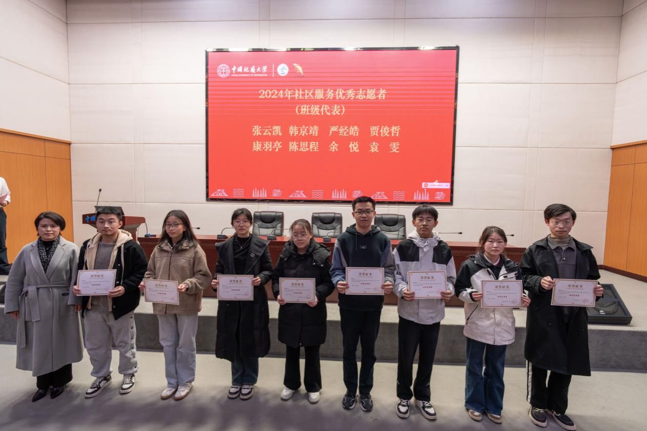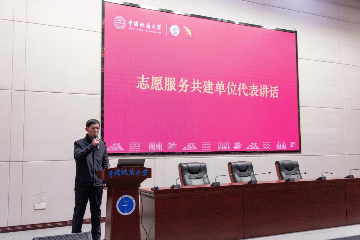 表彰环节,吴红莉为2024年社区服务优秀志愿者颁奖,李靖为2024年社区服务优秀志愿服务团队和科普讲解、国旗护卫优秀志愿者颁奖,张宽裕为在第二届全国地质文化艺术节、2025年蛇年春晚武汉录制会场优秀志愿者颁奖。