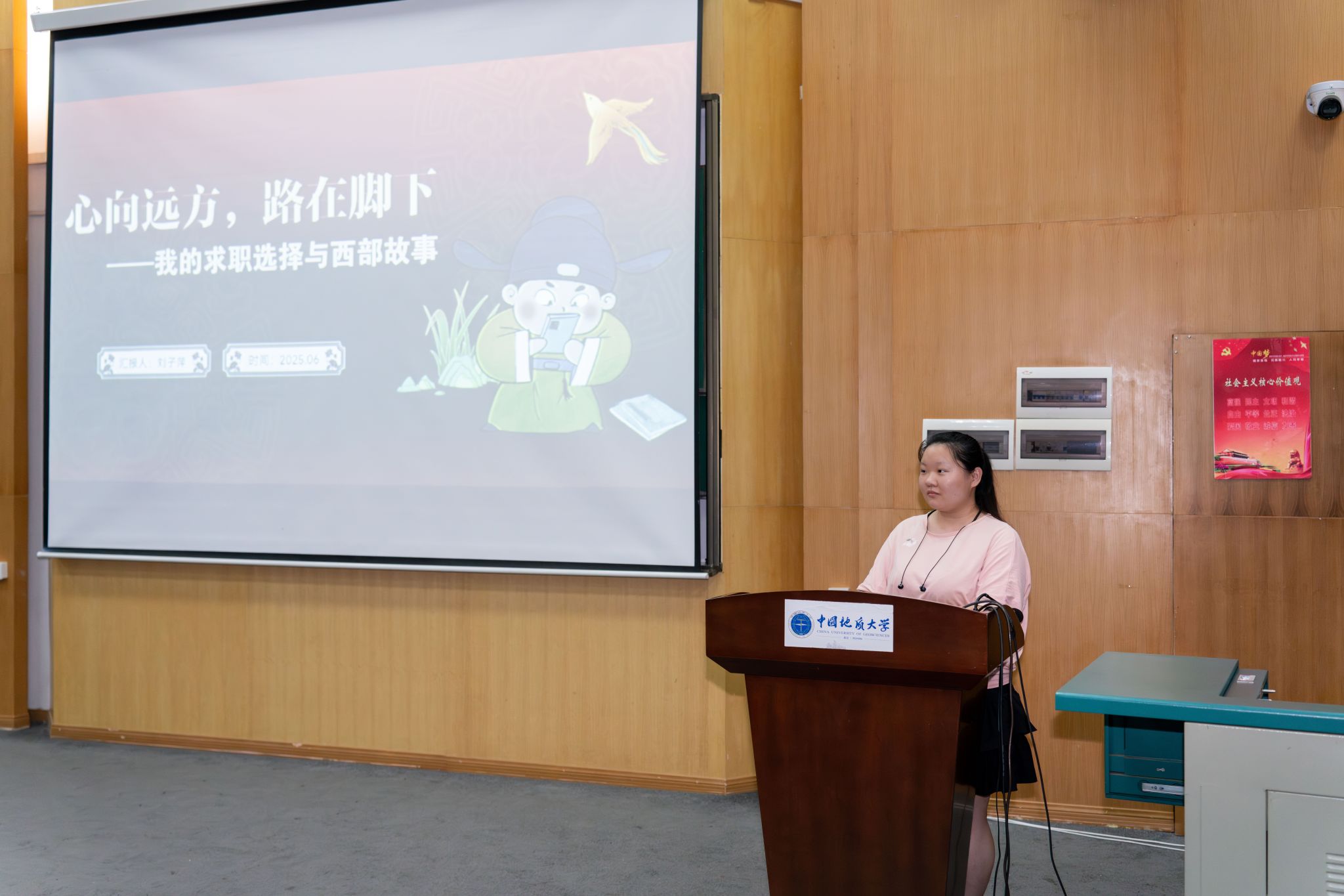2025年西部计划志愿者刘子萍以《心向远方,路在脚下——我的求职选择与西部故事》为题分享备考西部计划经验。她结合自身学习与求职经历,讲述了西部计划的相关政策、选拔流程和备考经验,让同学们对西部计划有了更清晰的认识。
