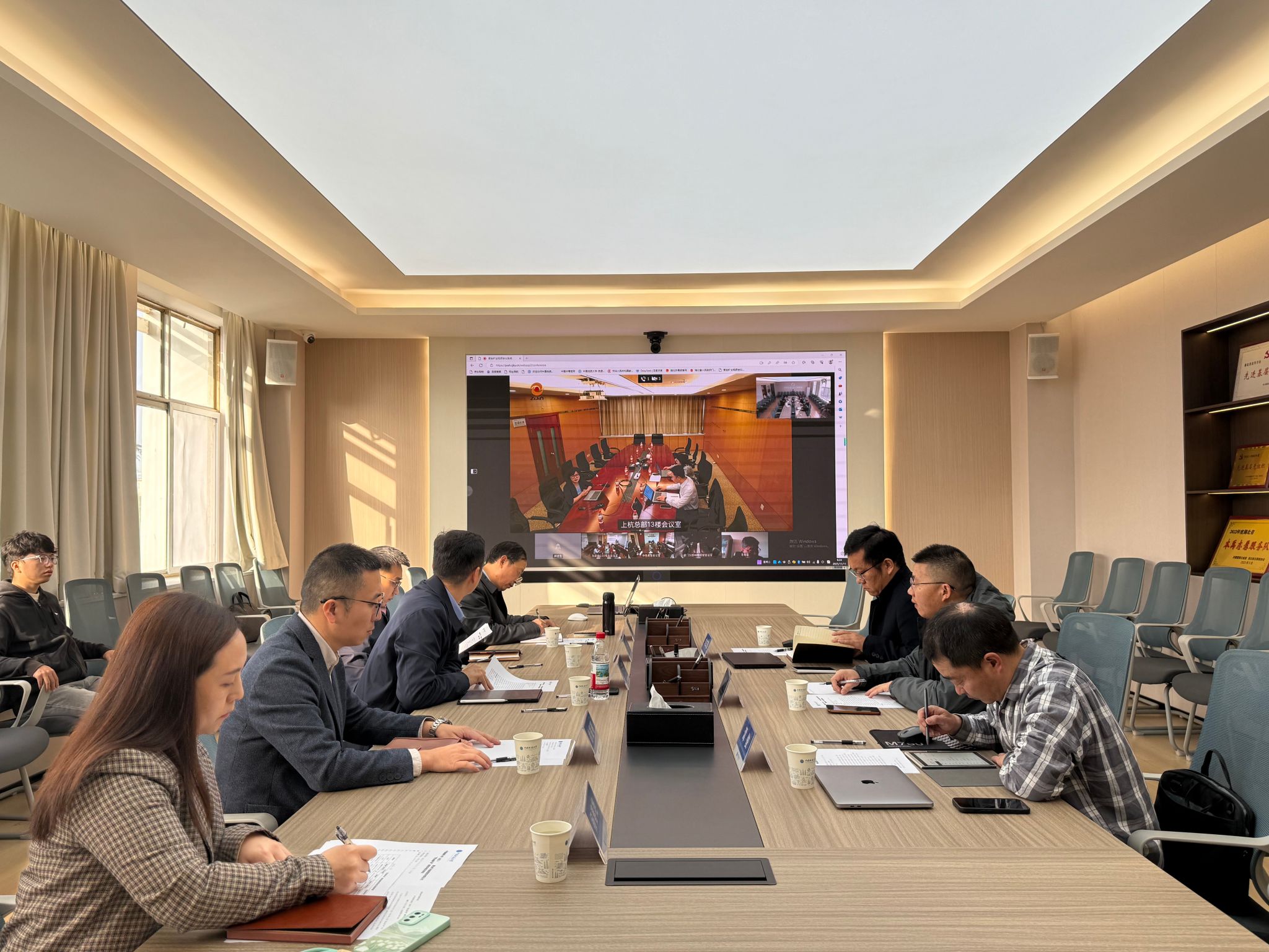 与紫金矿业共同举行资源勘查工程(紫金地矿班) 课程共建启动视频会。紫金矿业地勘院副院长王晨昇、官荣柱,中色紫金地勘(北京)高级地质专家祝新友等15位企业专家代表线上参会,资源跳高高电子
