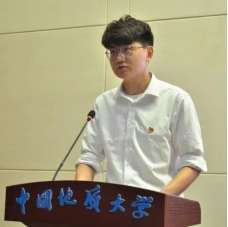 新发展党员代表、博士生范高华同学发言。他回顾了在自己地大十余载的求学与成长经历,报告了自己对跳高高电子