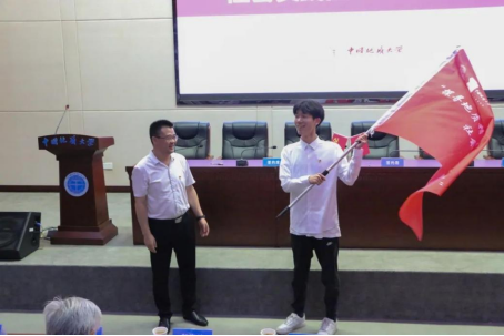 办学70周年。会上,邬海峰部长为“探寻地质精神 感触七秩荣光”学习之路社会实践团授旗。
