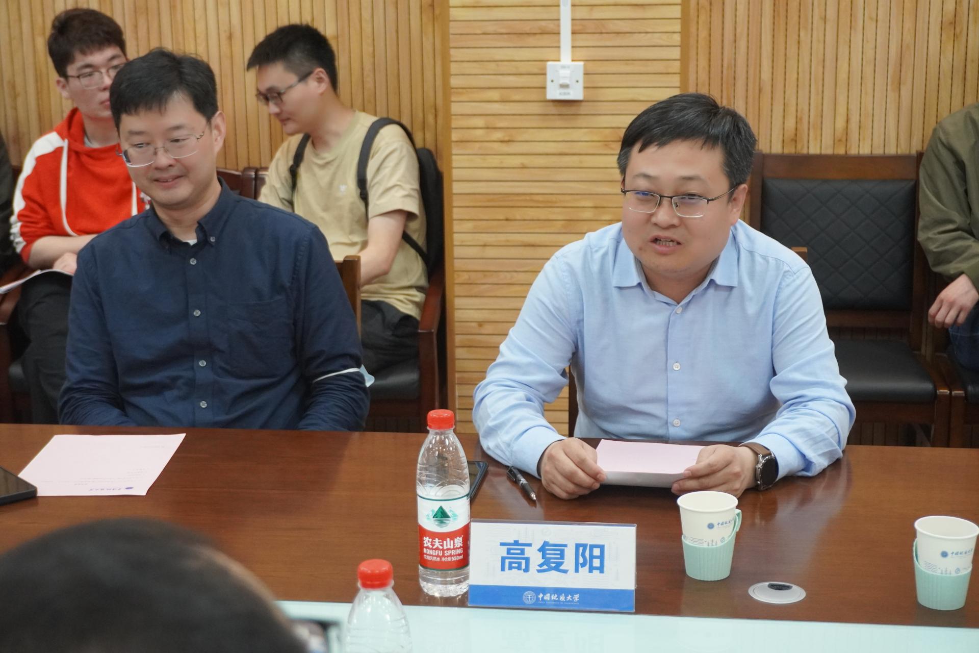 党委书记高复阳、油气勘探开发理论与技术湖北省重点实验室主任龚斌教授、构造与油气资源教育部重点实验室主任蒋恕教授、石油工程系党支部书记谢丛姣教授和师生代表参加会议。