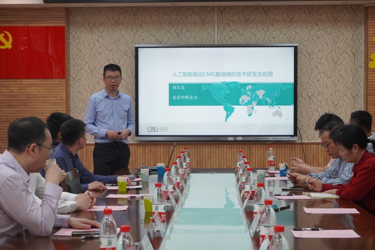 会上,刘大宝以“人工智能驱动的CMG数值模拟技术研发及应用”为题作学术报告。双方人员围绕碳中和及能源转型领域大型化、复杂化和一体化数值模拟应用经验、油藏数值模拟软件的开发与应用、人工智能技术发展、跳高高电子人才培养